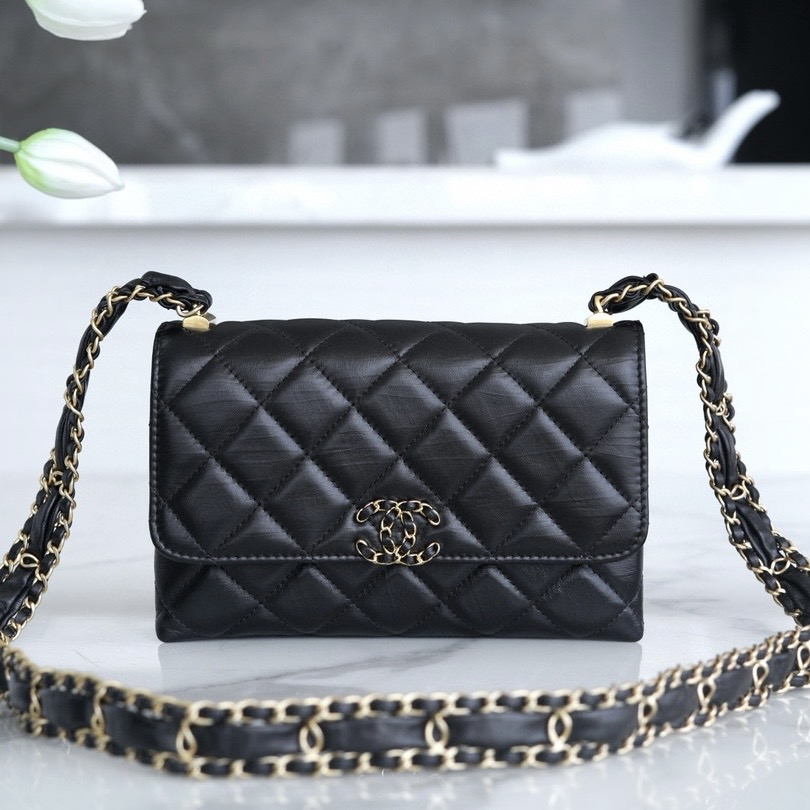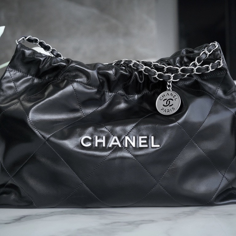 Canada香奈兒女包經典款式官網專櫃 22 手袋 黑色亮面小牛皮