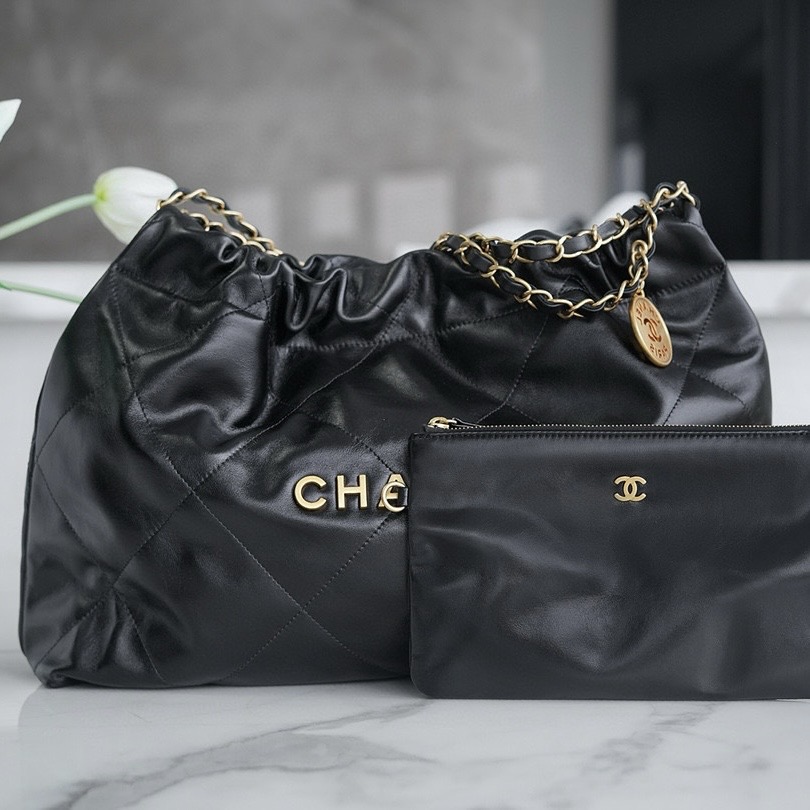 Canada香奈兒女包經典款式官網專櫃 22 手袋 黑色亮面小牛皮