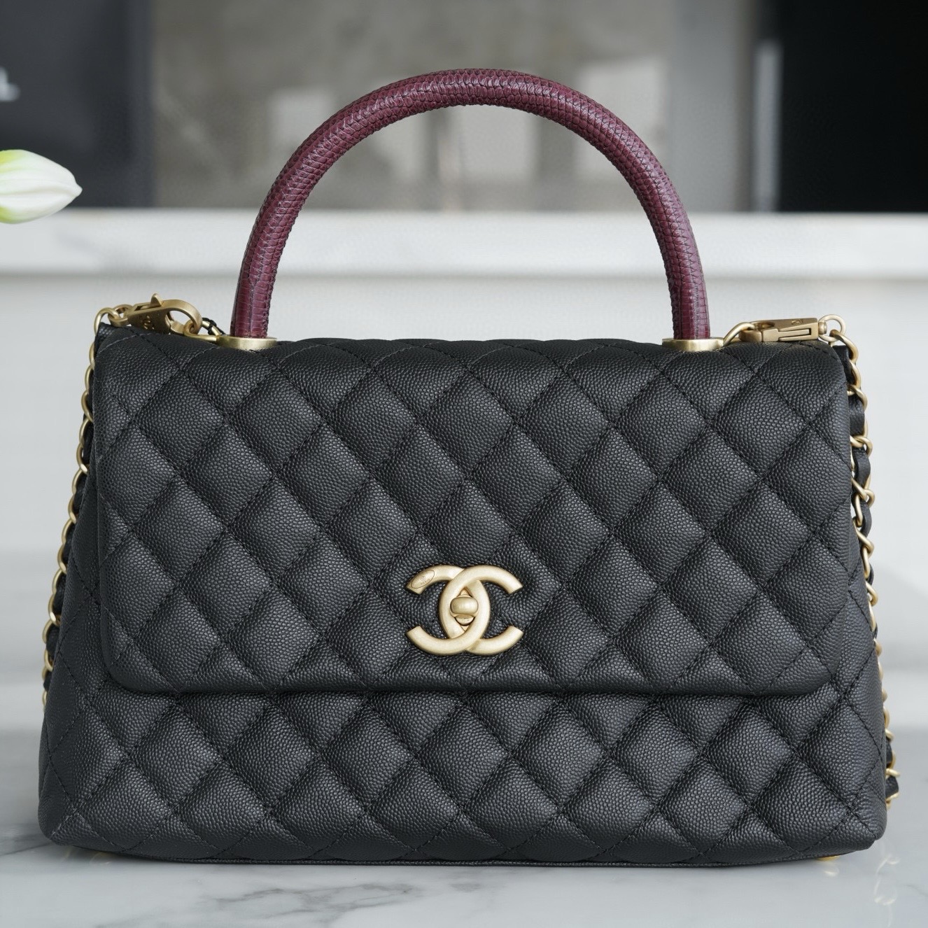 Chanel包包Los Angeles USA官網 coco Handle 蜥蜴手柄 黑色小號