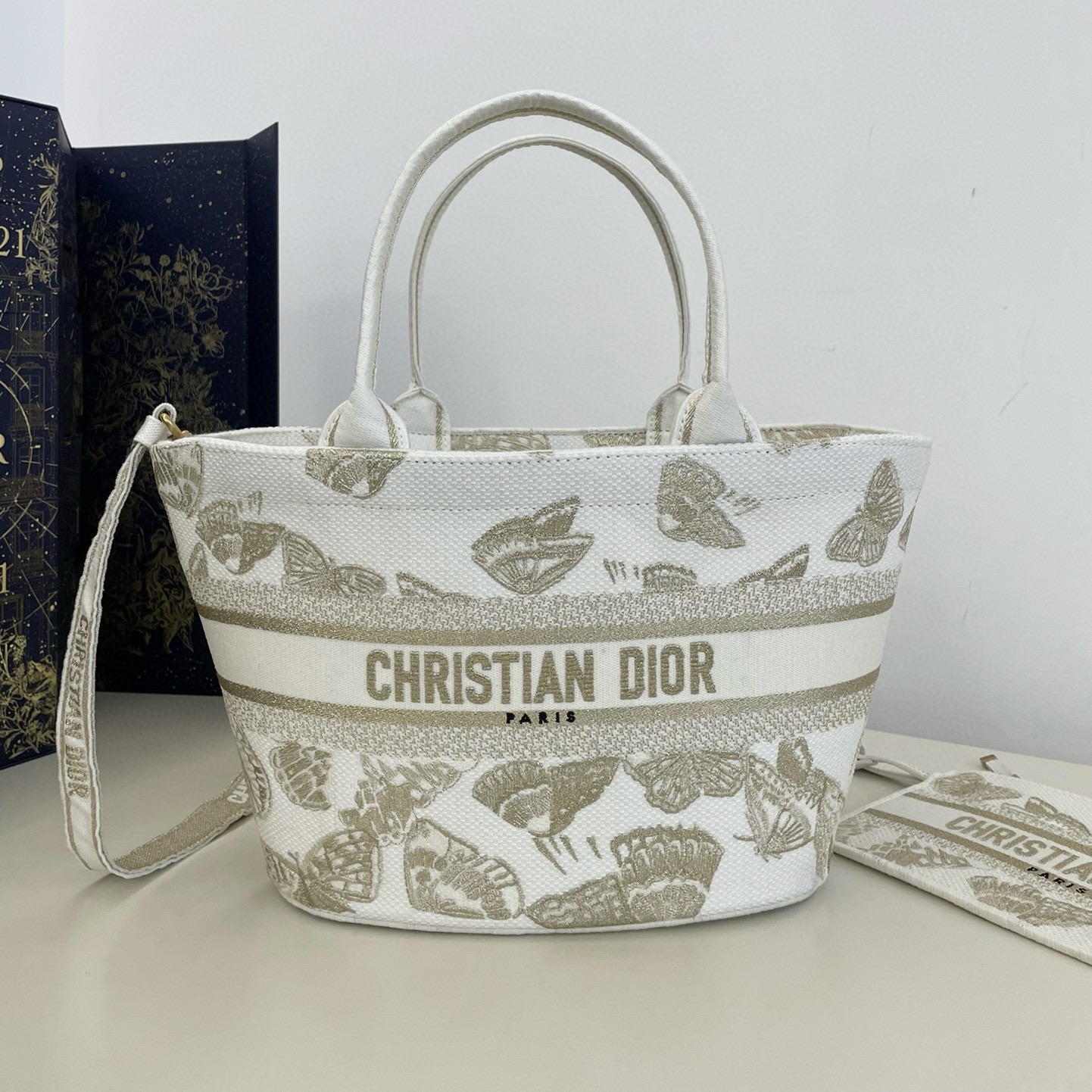 這款 Book Tote 手袋由 Dior 創意總監瑪麗亞·嘉茜婭·蔻麗 (Maria Grazia Chiuri) 設計,是一款經典單品。通體飾以由彼得羅·魯福 (Pietro Ruffo) 設計的白底多色 Mexico 茹伊印花圖案刺繡,以繽紛色調突顯蝴蝶和傳統墨西哥花朵的美妙風采,可收納各種日常用品。中號款式,正面飾以 Christian Dior Paris 標誌,彰顯 Dior 的精湛工藝,可手提或肩背。尺寸:36 x 27.5 x 16.5 厘米(長 x 高 x 寬)
