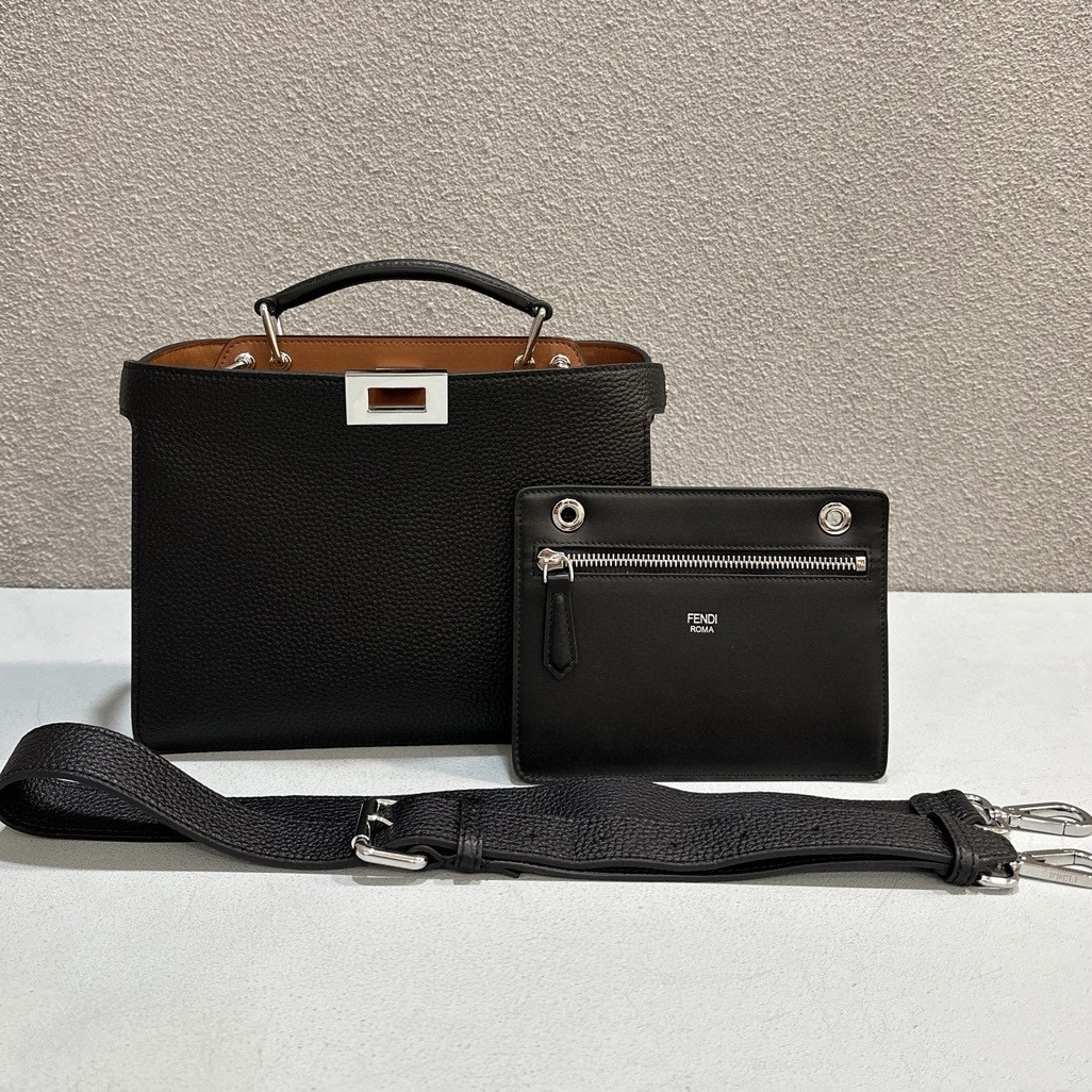 FENDI男士手袋2024專櫃新款經典 Peekaboo ISeeU迷你號手袋 灰色皮革手袋