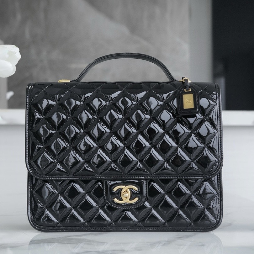 Canada香奈兒女包經典款式官網專櫃 22 手袋 黑色亮面小牛皮