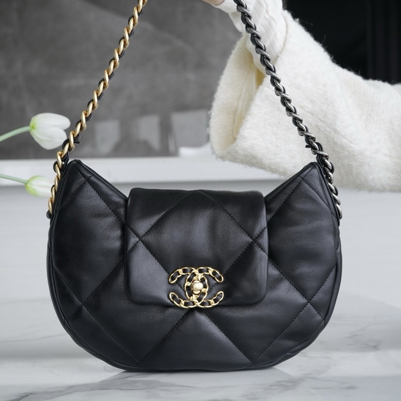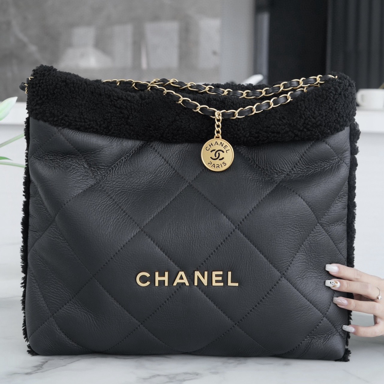 Canada香奈兒女包經典款式官網專櫃 22 手袋 黑色亮面小牛皮
