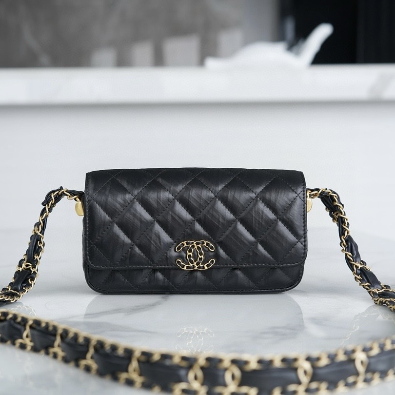 CHANEL香奈兒2024新款Canada官網 22 迷你手袋 黑色亮面小牛皮