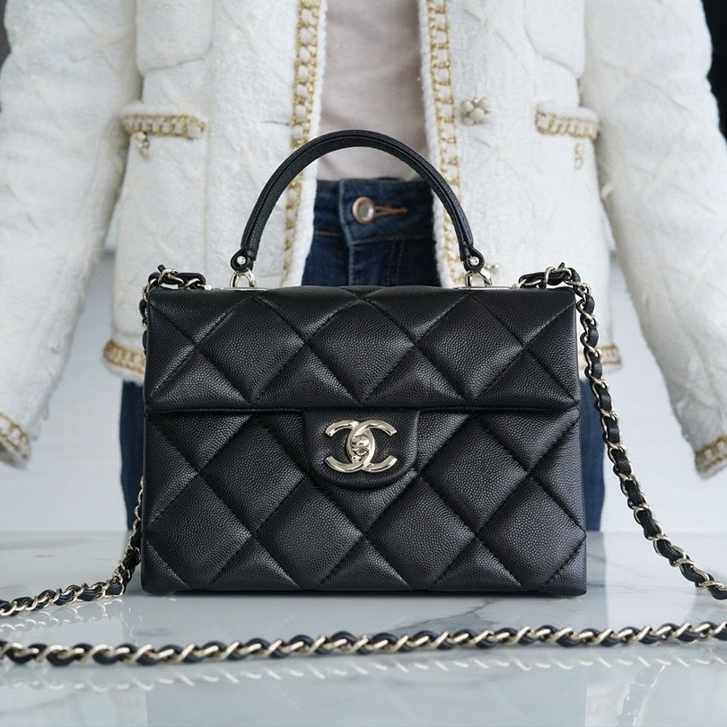 皮質是軟軟的牛皮,耐磨有光澤,滿滿的質感溢屏而出✨手柄是皮穿鏈條上面鑲了小鉆石更是讓人心動不已,早買早香系列🌬自帶小鏡子,底部大雙c,更顯得精致,百搭耐看不過時~