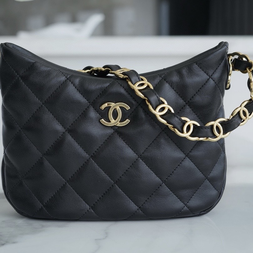 Chanel 22s 編織金球𝑯𝒐𝒃𝒐嬉皮包 黑色〰️
