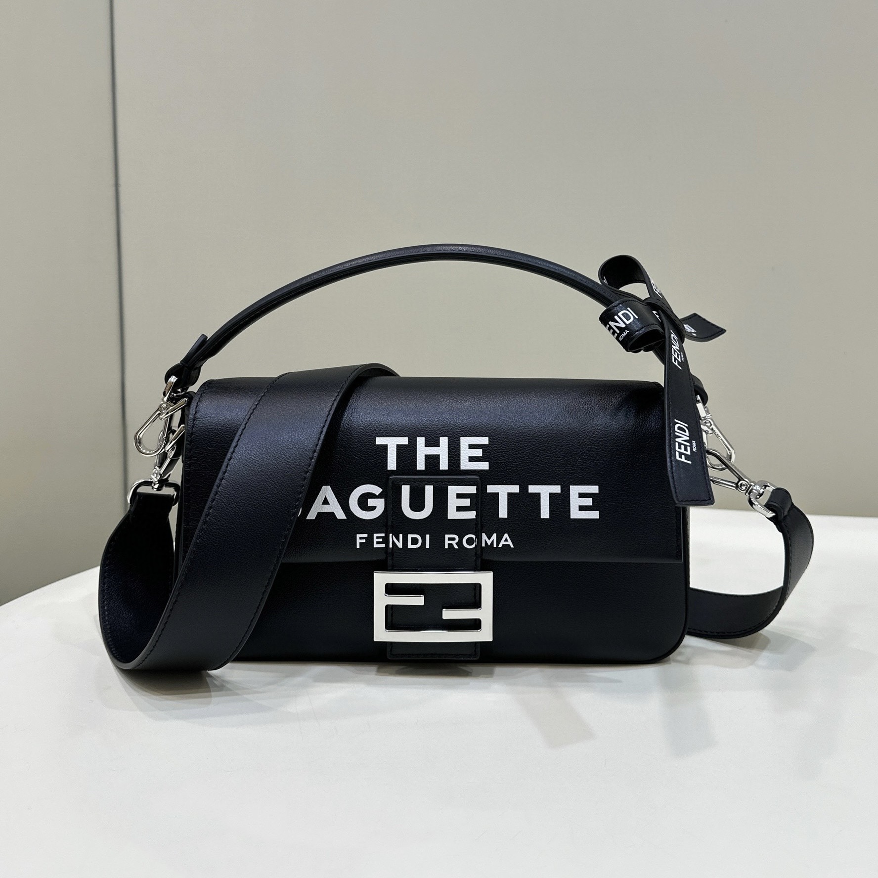 芬迪FENDI中國官方網站 Iconic Baguette中號手袋黑色納帕軟皮革