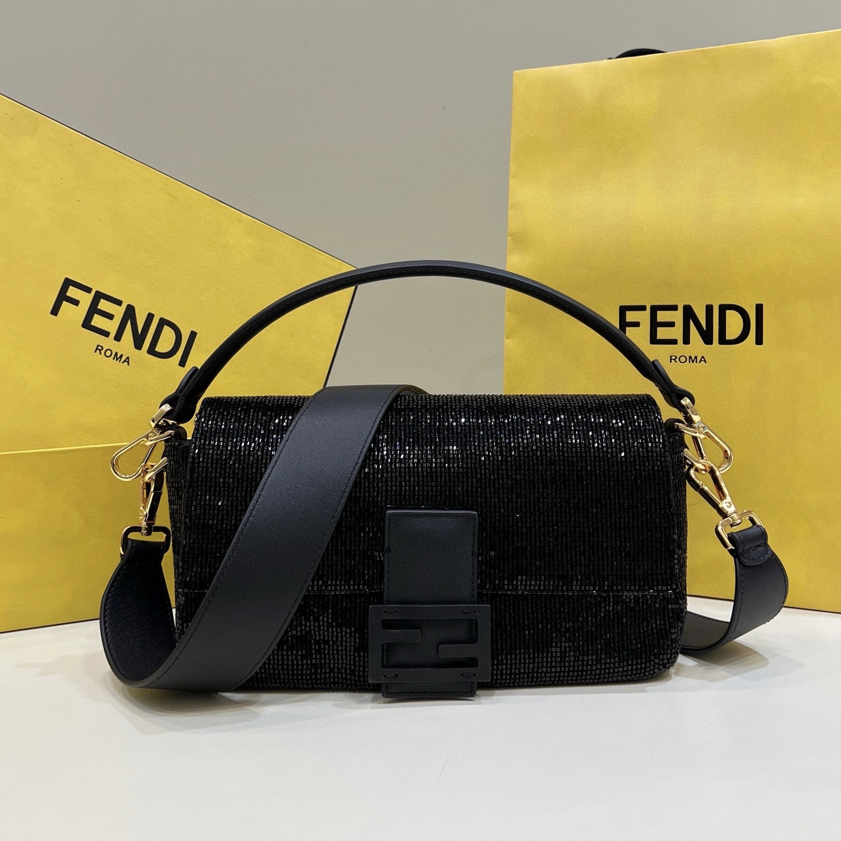 芬迪中國官方網站 fendi Iconic Baguette迷你手袋 黑色