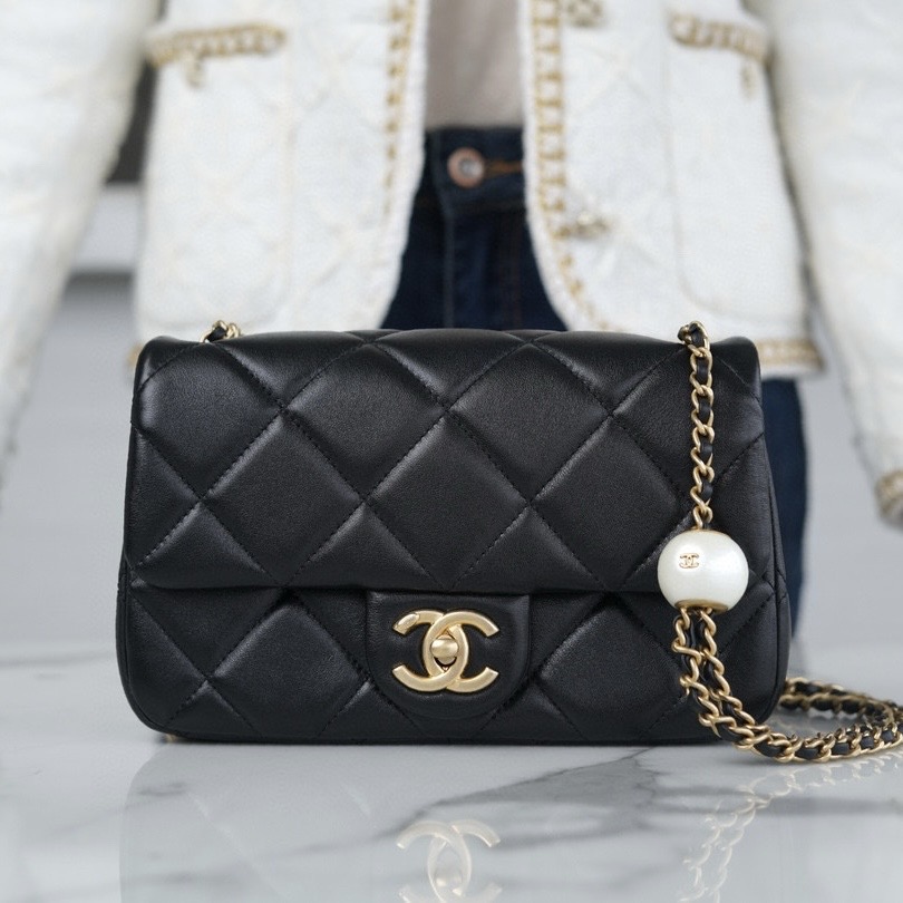New York USA CHANEL包包專櫃價格多少錢 22 迷你手袋 亮面小牛皮 黑色