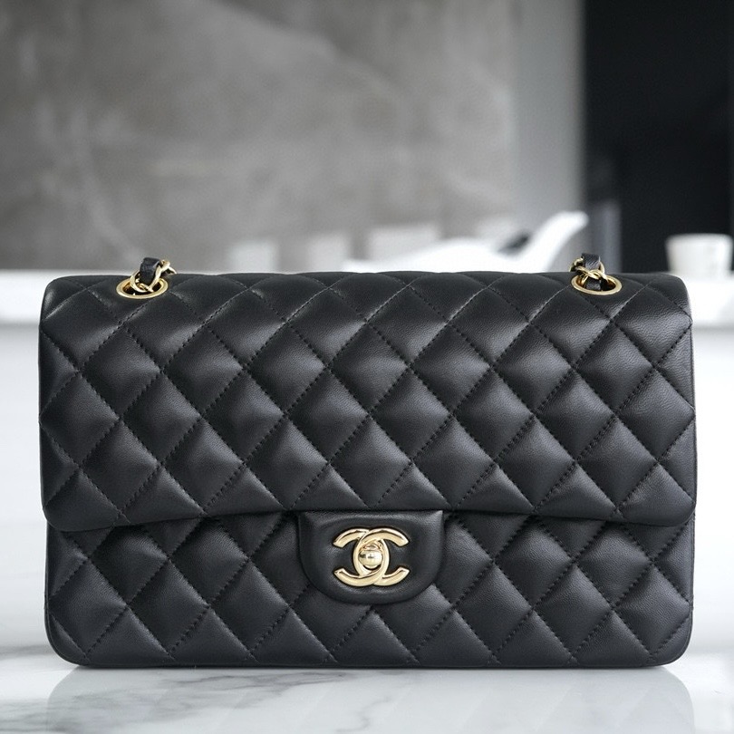 Canada香奈兒女包經典款式官網專櫃 22 手袋 黑色亮面小牛皮