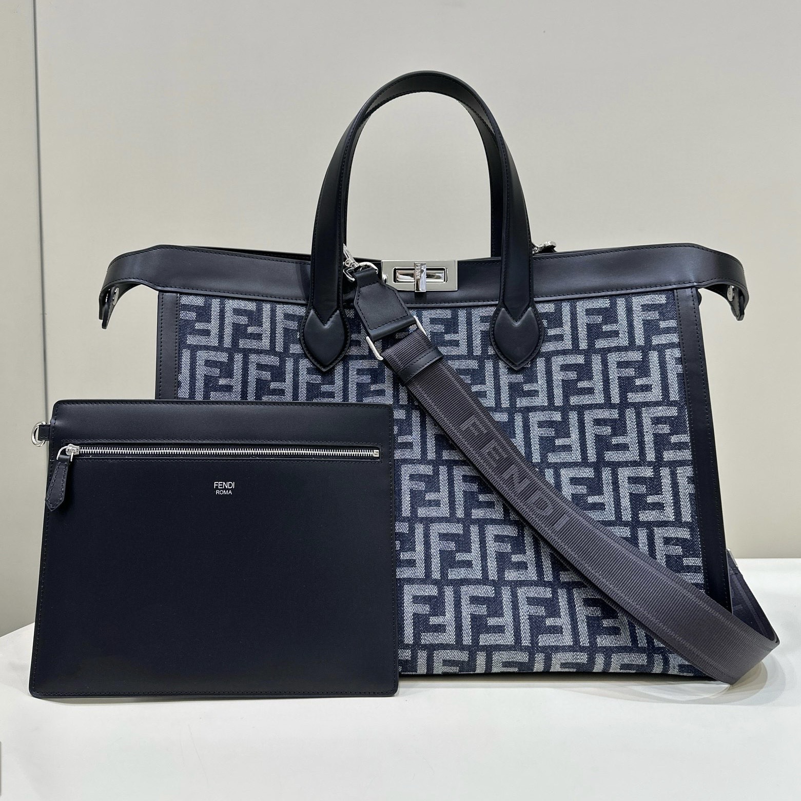 peekaboo氣質大包進口皮質配牛仔材質輕巧又高級~容量特別大 旅行出差必備品!! 小包搭配使用 有雙手柄和長肩帶便攜的很~
