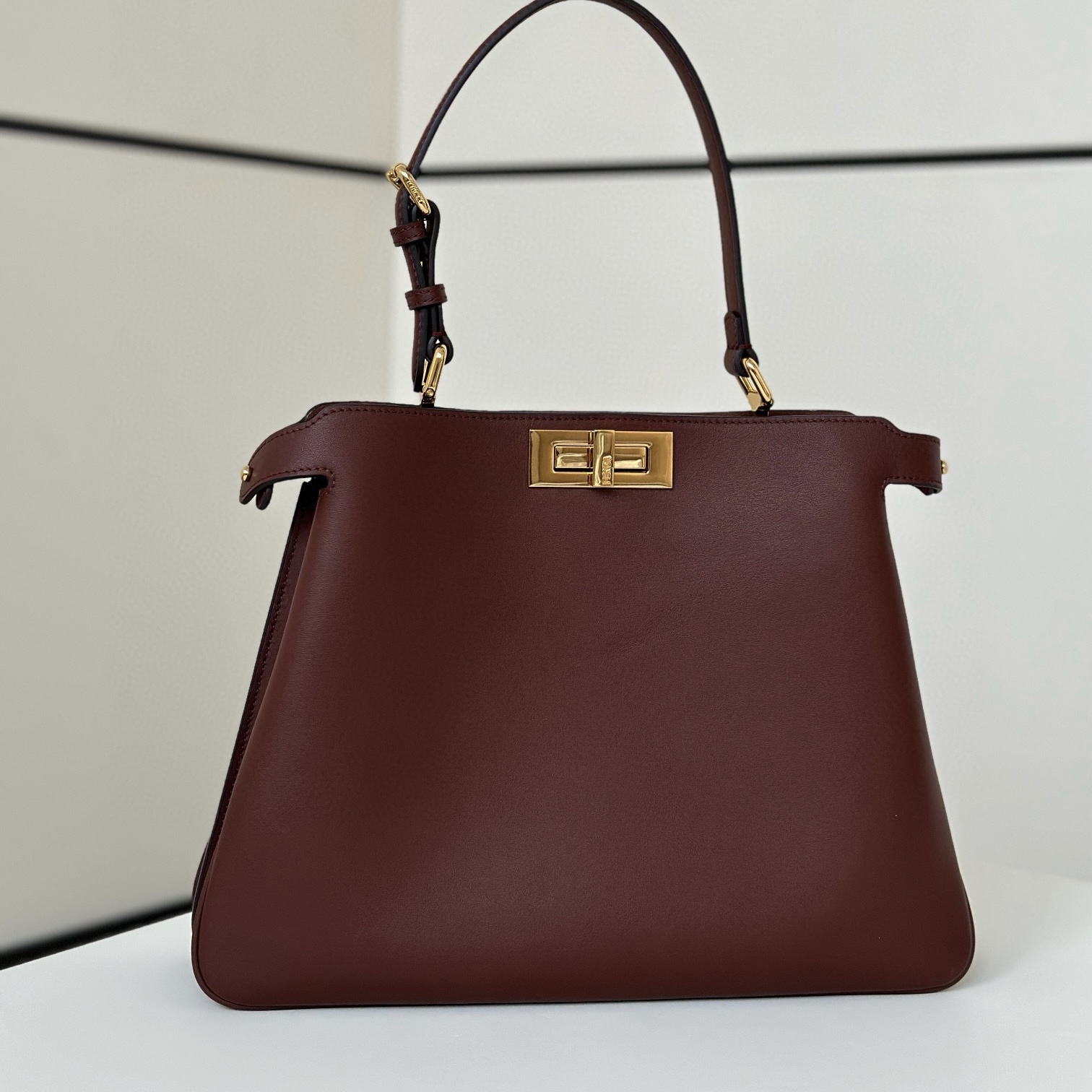 標誌性中號Peekaboo Soft手袋,濃縮了FENDI的工藝和創意。於2009年推出的Peekaboo手袋是經典手袋的標誌。此名稱靈感源自兒童遊戲「躲貓貓(Peek-a-boo)」,突顯手袋裏裏外外的美感。