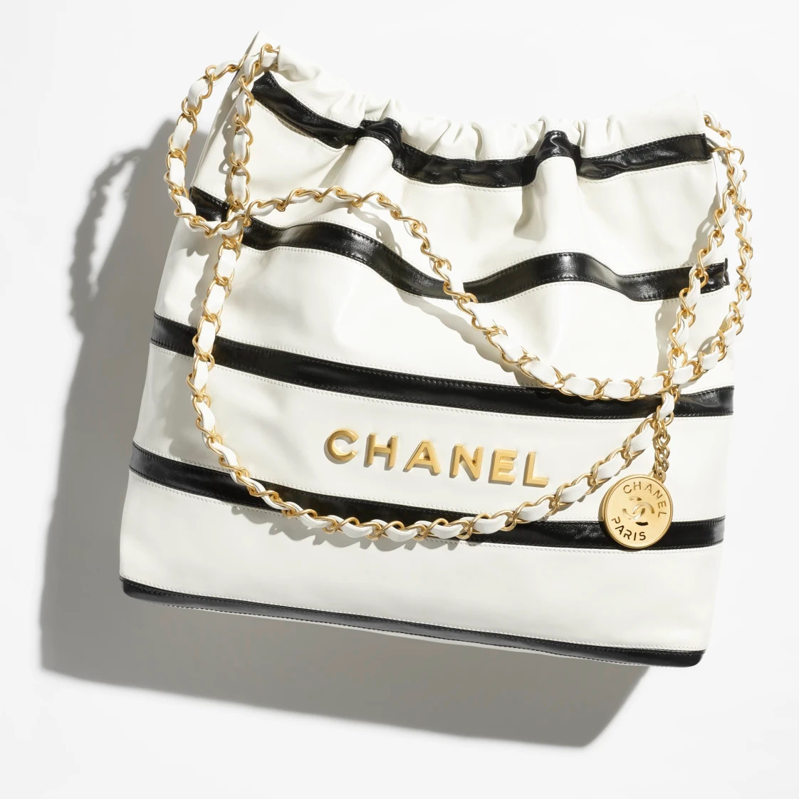 英國CHANEL香奈兒女包最新款式網站查詢 22 小號手袋 黑白拼色小牛皮