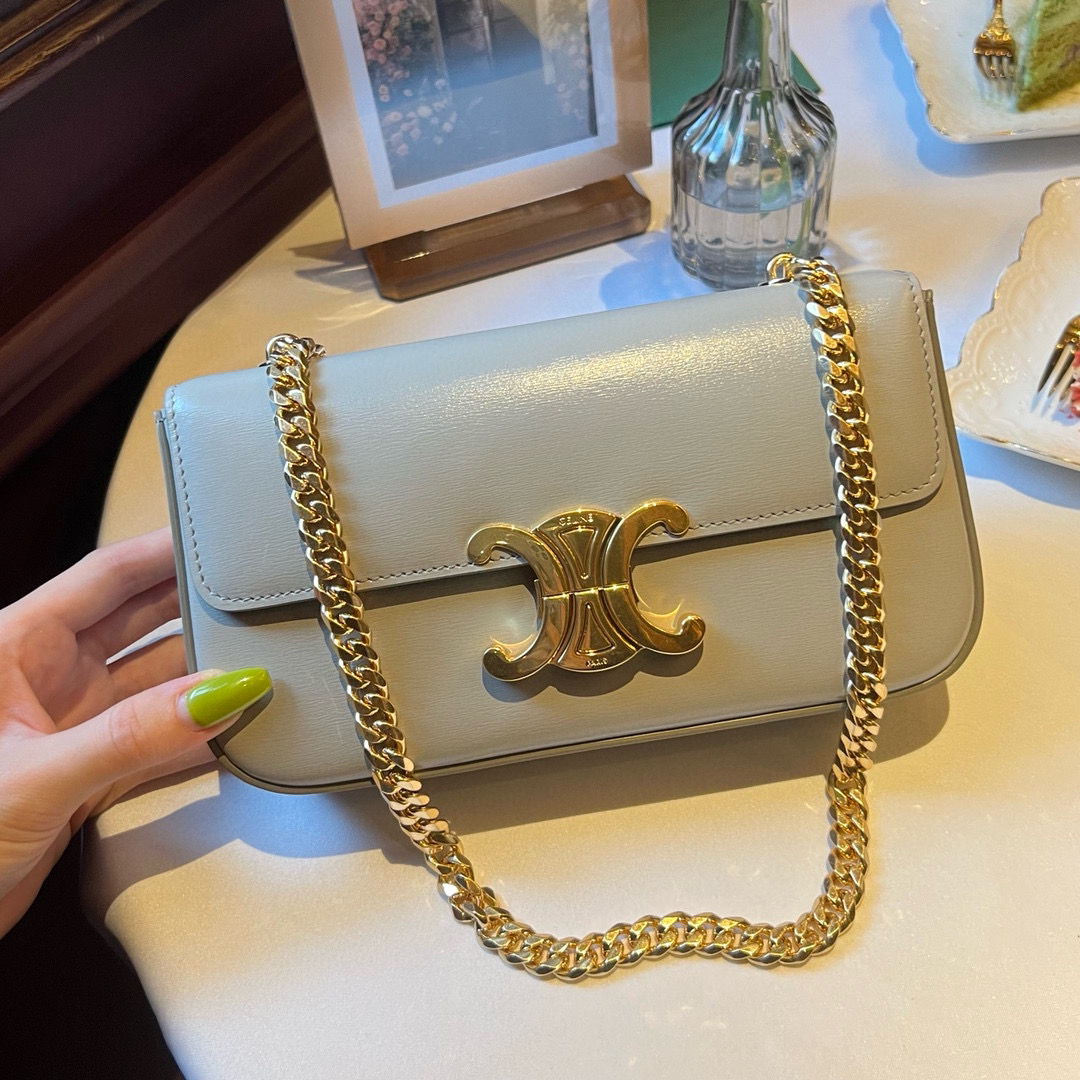 牛皮革 羊皮革襯裏 黑金色飾面 肩背 TRIOMPHE金屬鎖扣 1個主隔層 1個內側扁平口袋 鏈條長12英寸(30厘米)