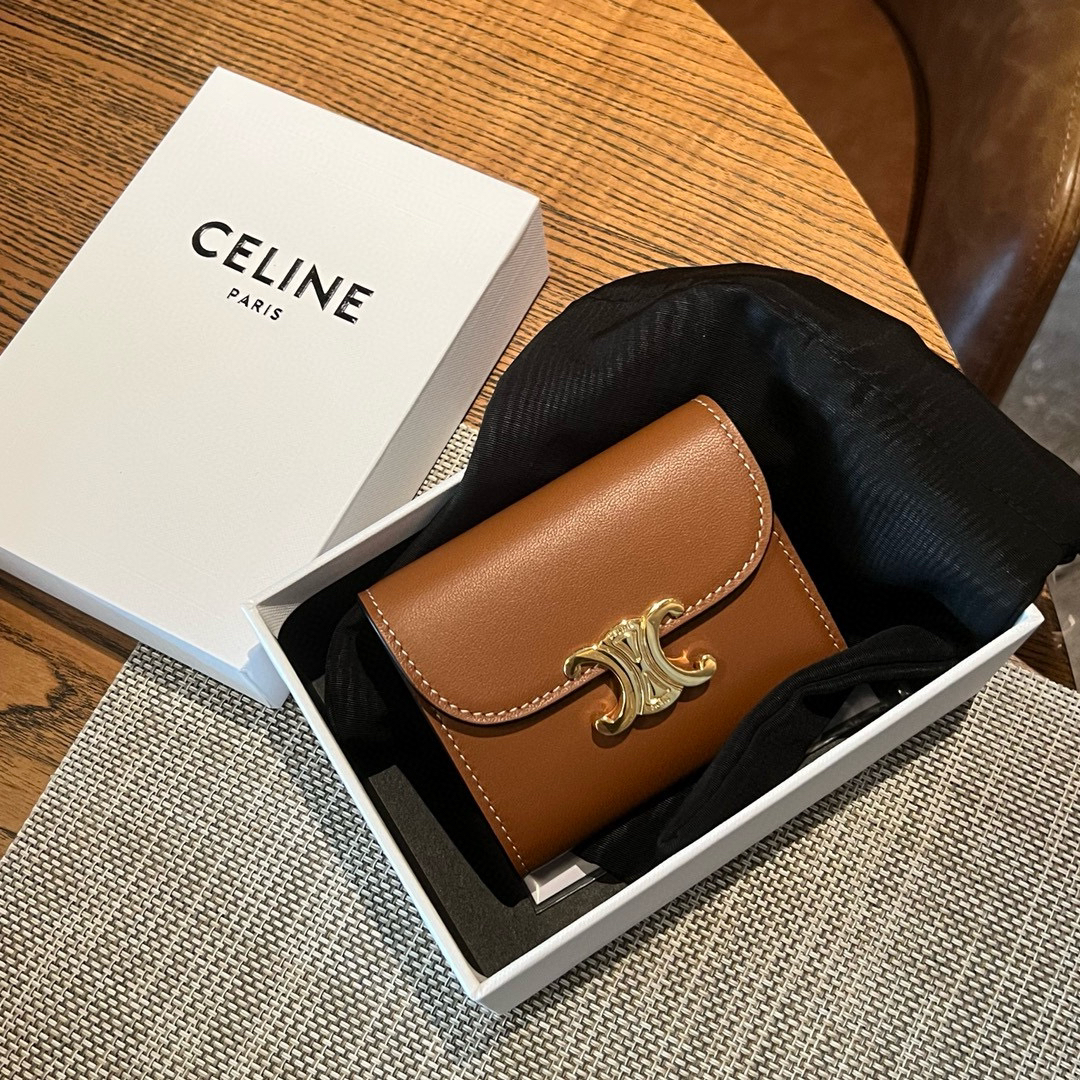 CELINE女士包 專櫃經典款式黑色 TRIOMPHE小號亮澤牛皮革錢包