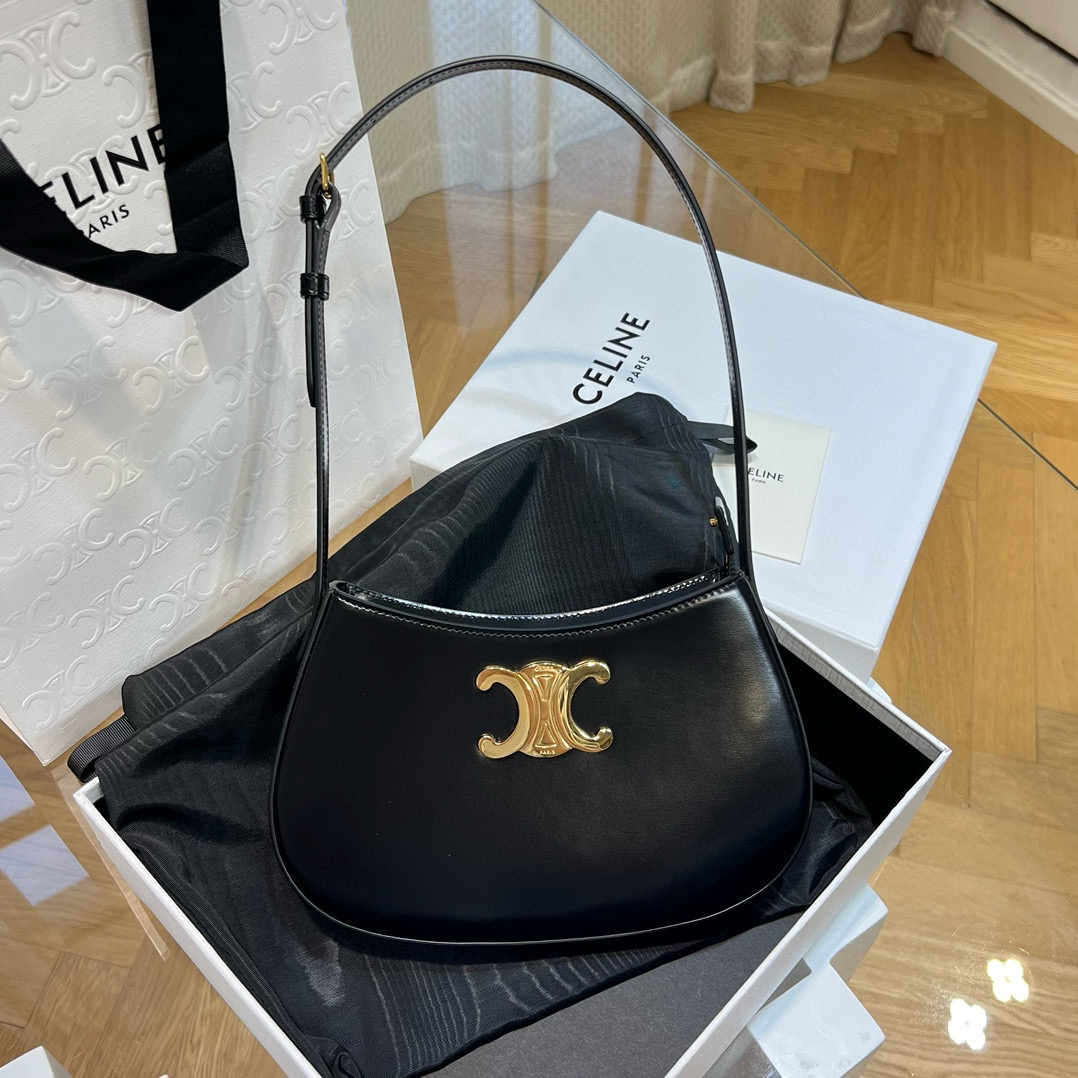 CELINE女士包2024新款TILLY中號亮澤牛皮革手袋專櫃價格圖片