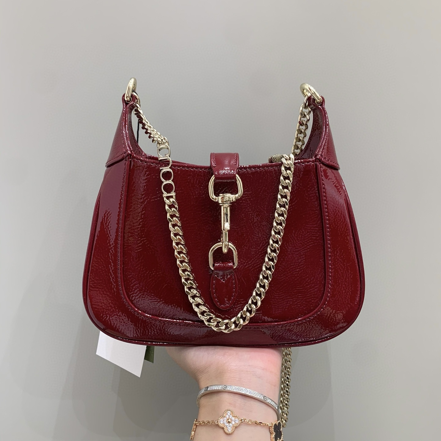 Gucci古馳包包官網價格多少錢 782849黑色漆皮Jackie小號手袋