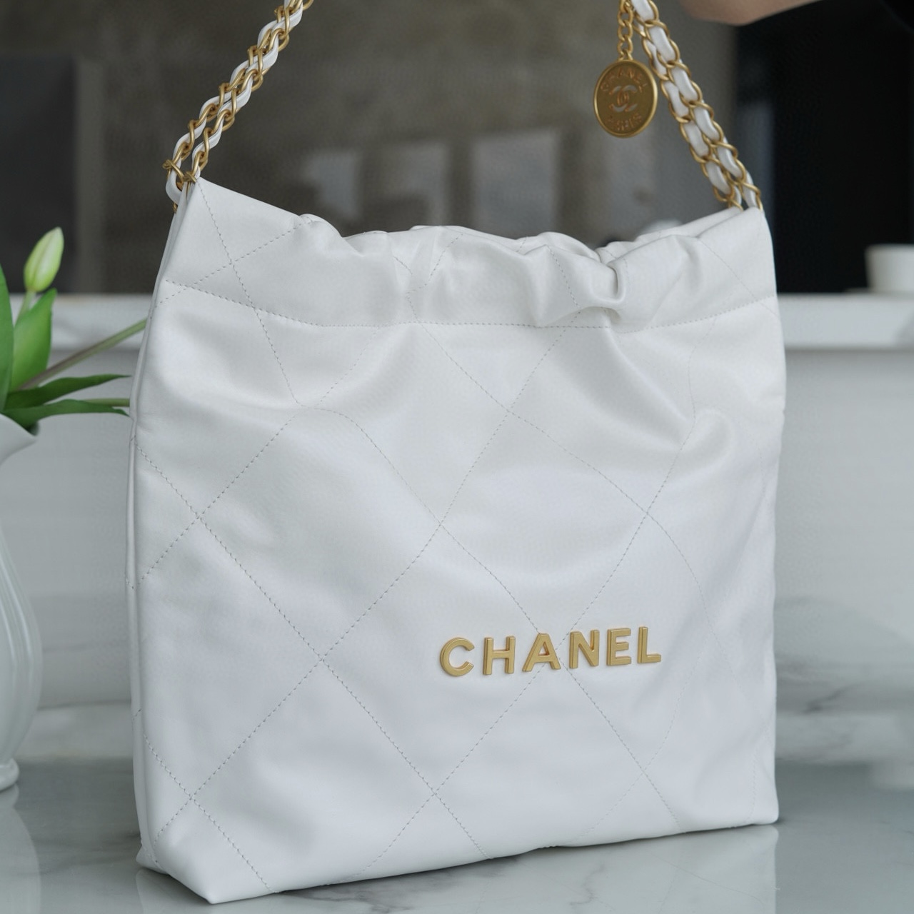 CHANEL包包香港官網價格圖片一覽表 22 小號手袋 白色亮面小牛皮