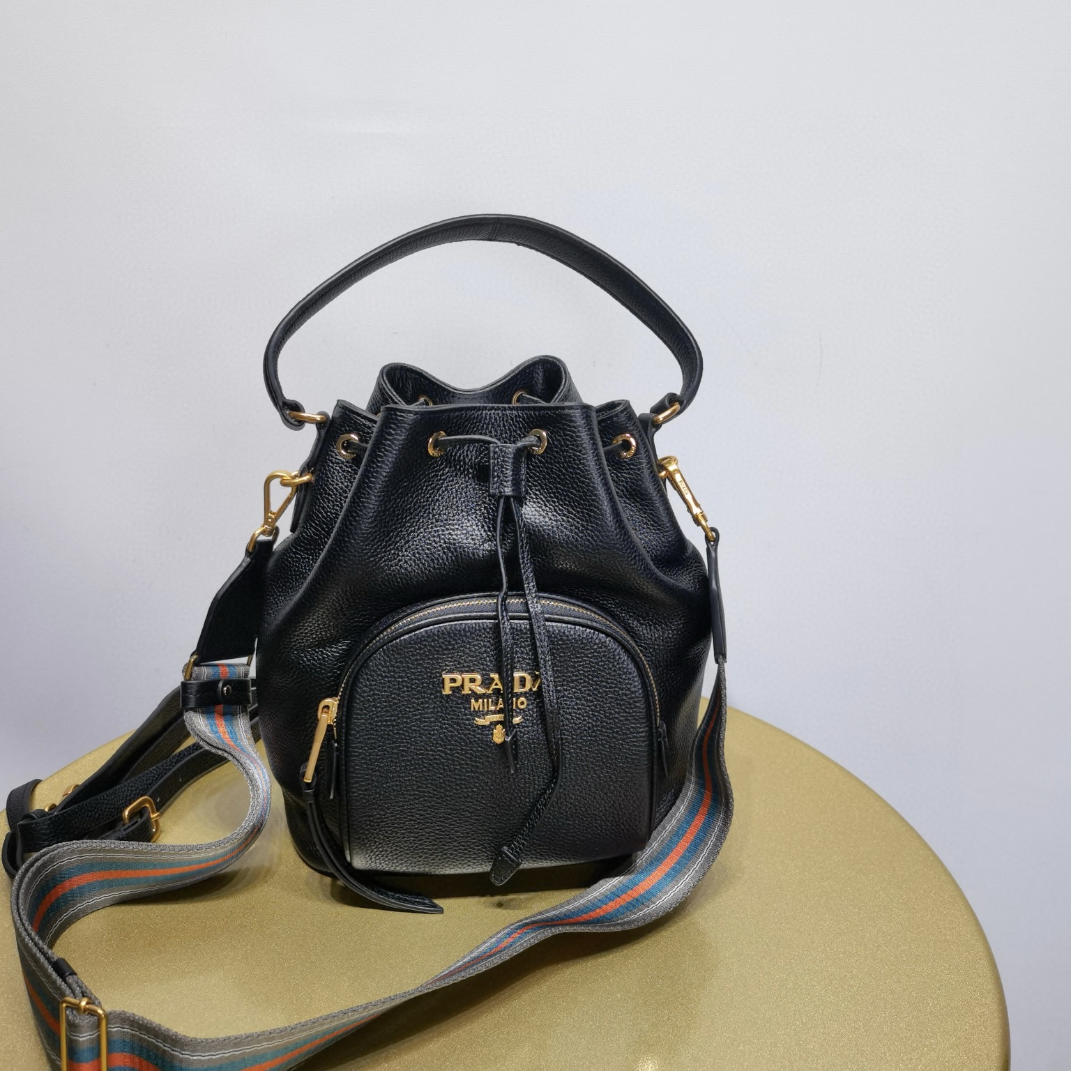 PRADA普拉達包包中文官方網站經典鹿紋皮革小號單肩包 黑色