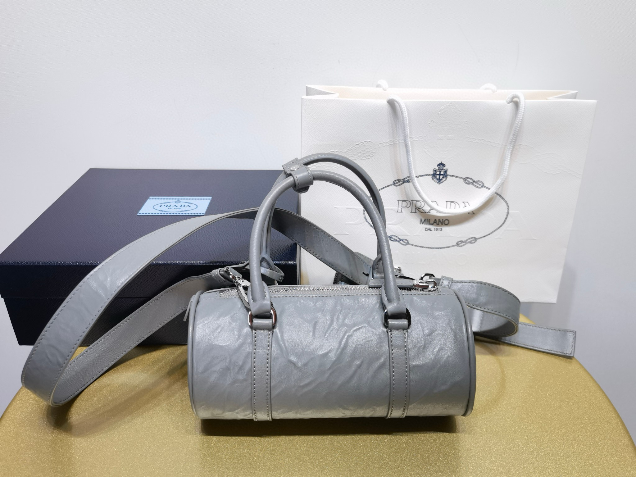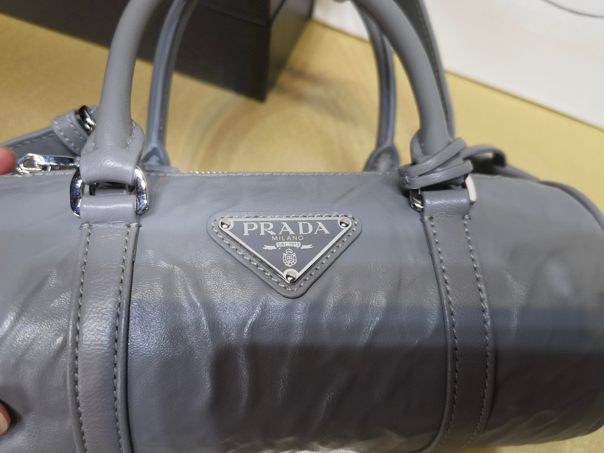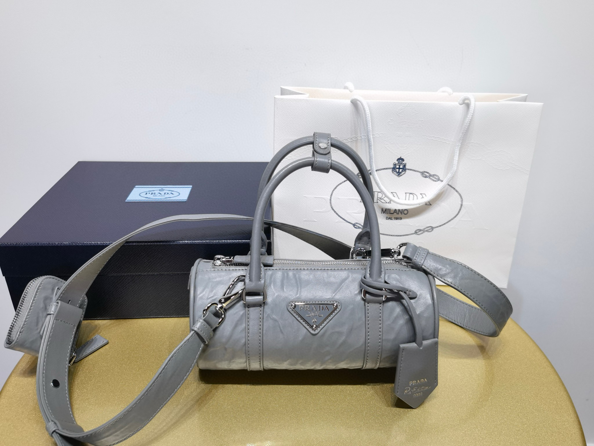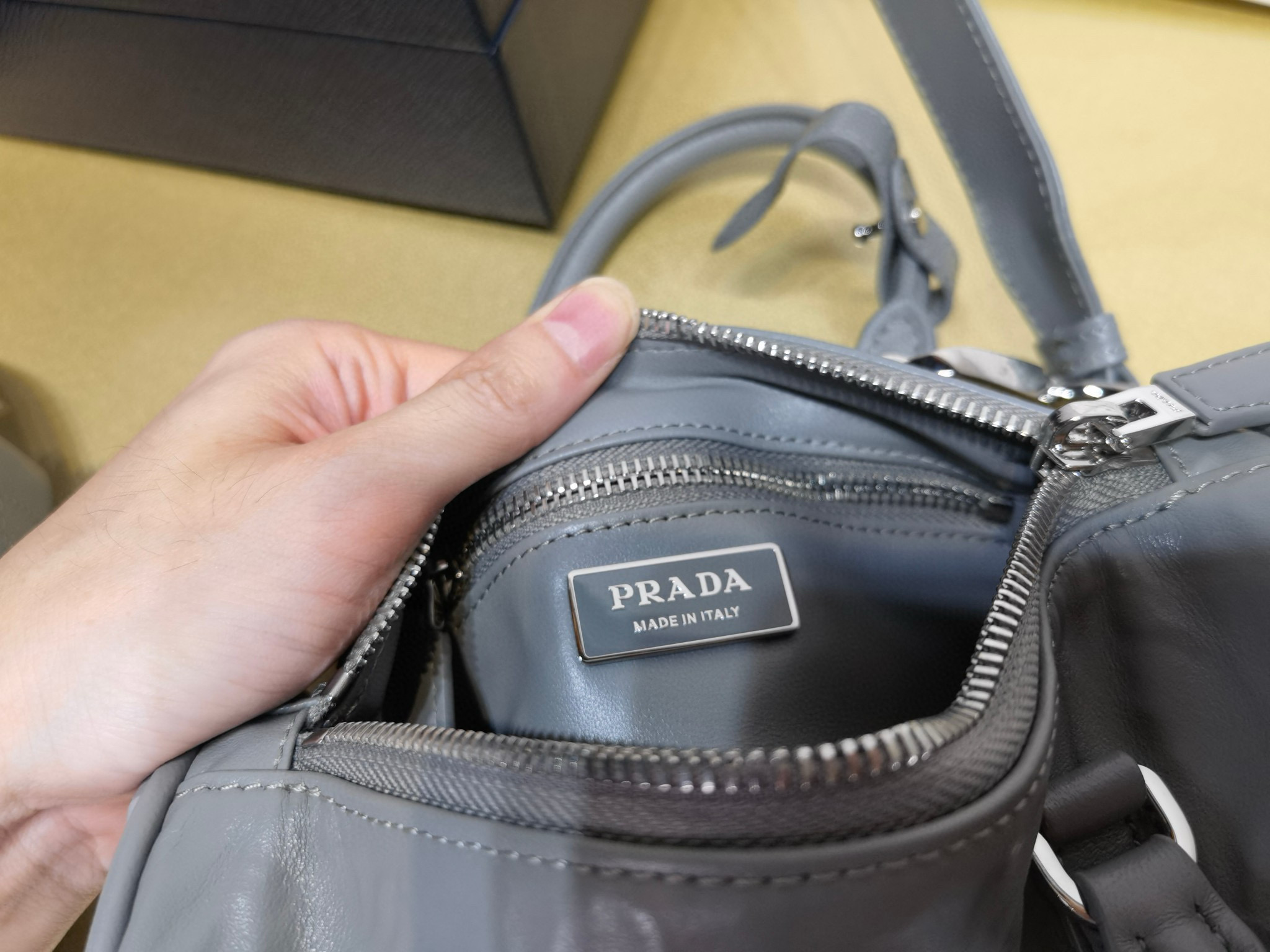 PRADA普拉達包包保值嗎 官網旗艦店新款灰色羊皮革手提包