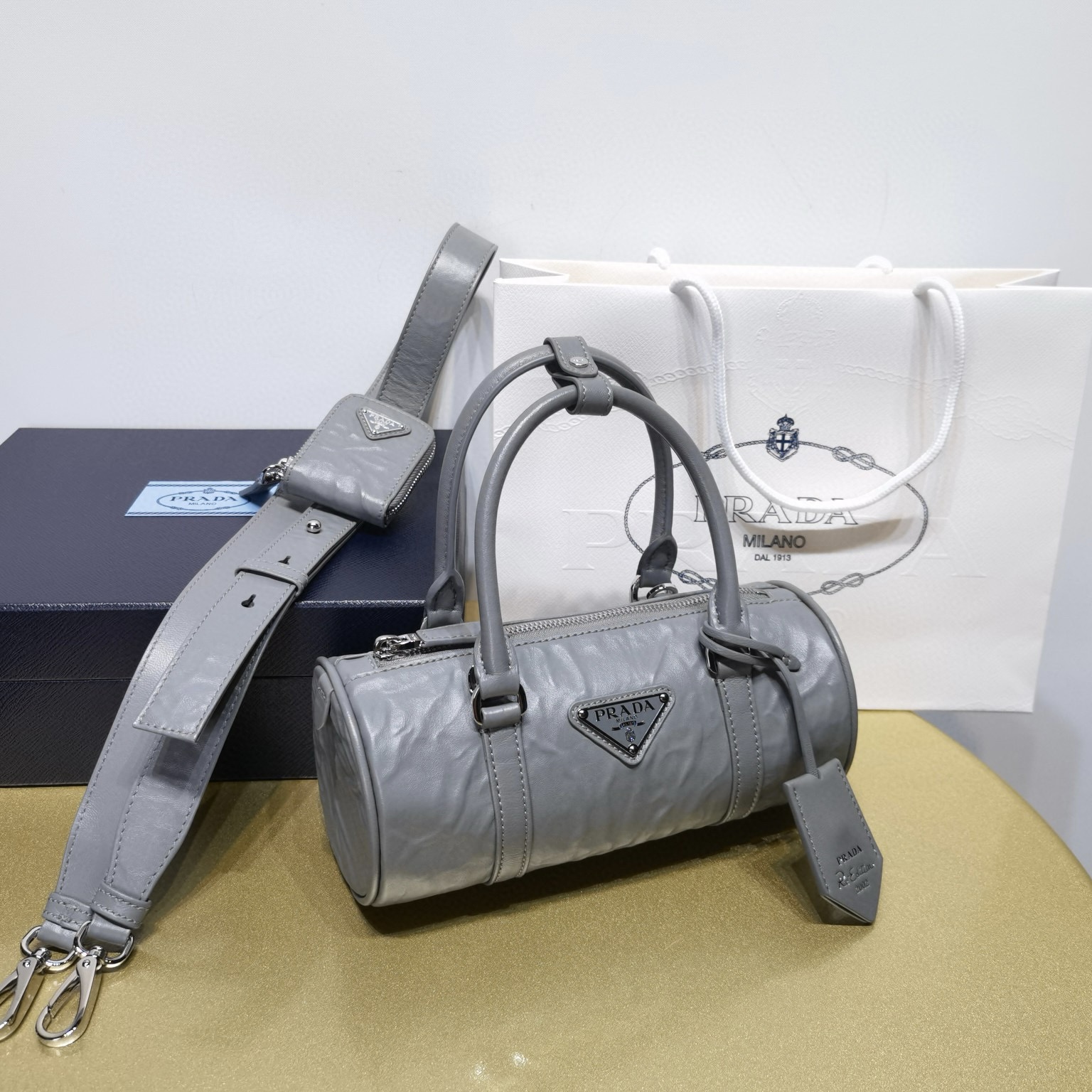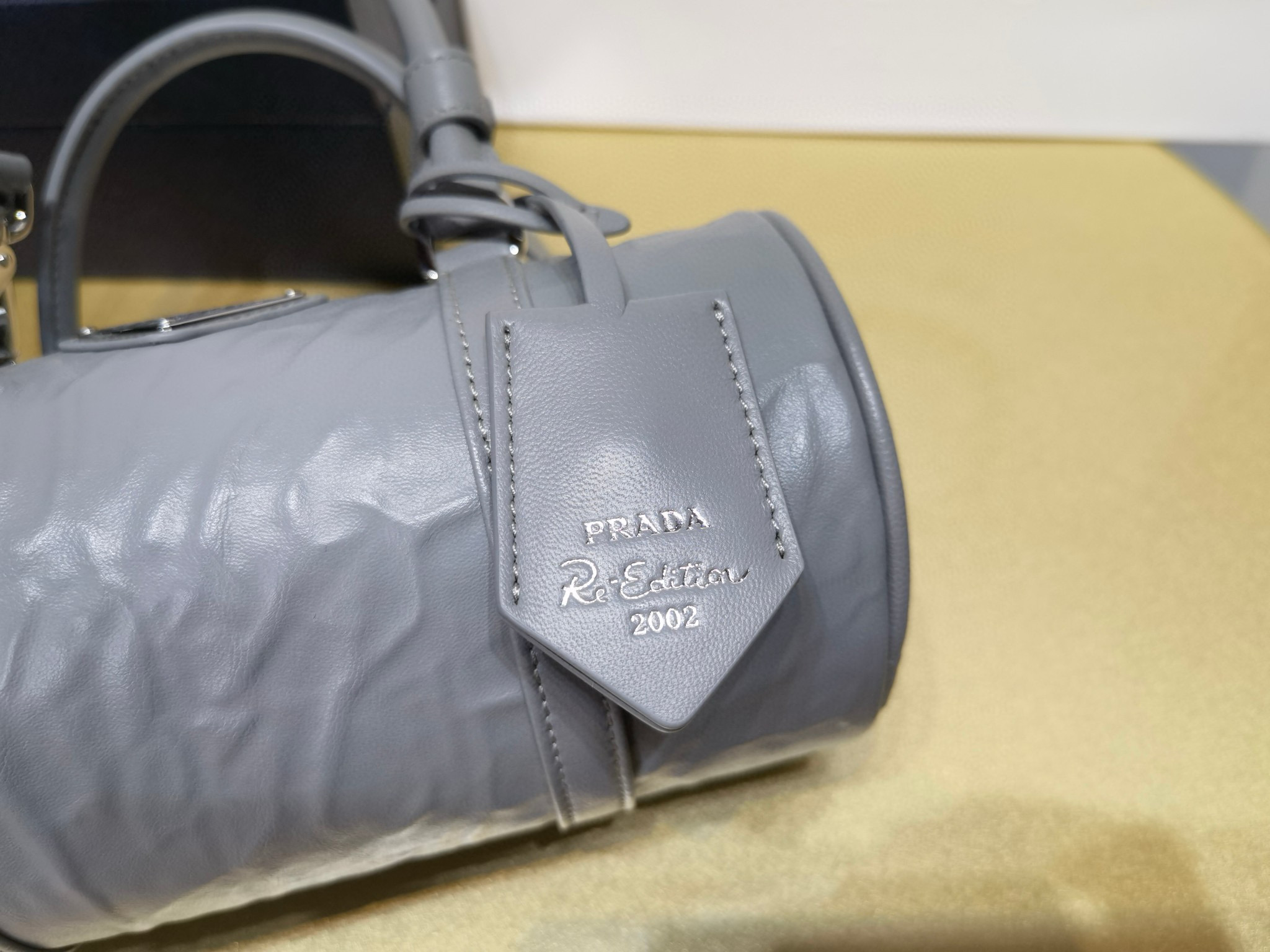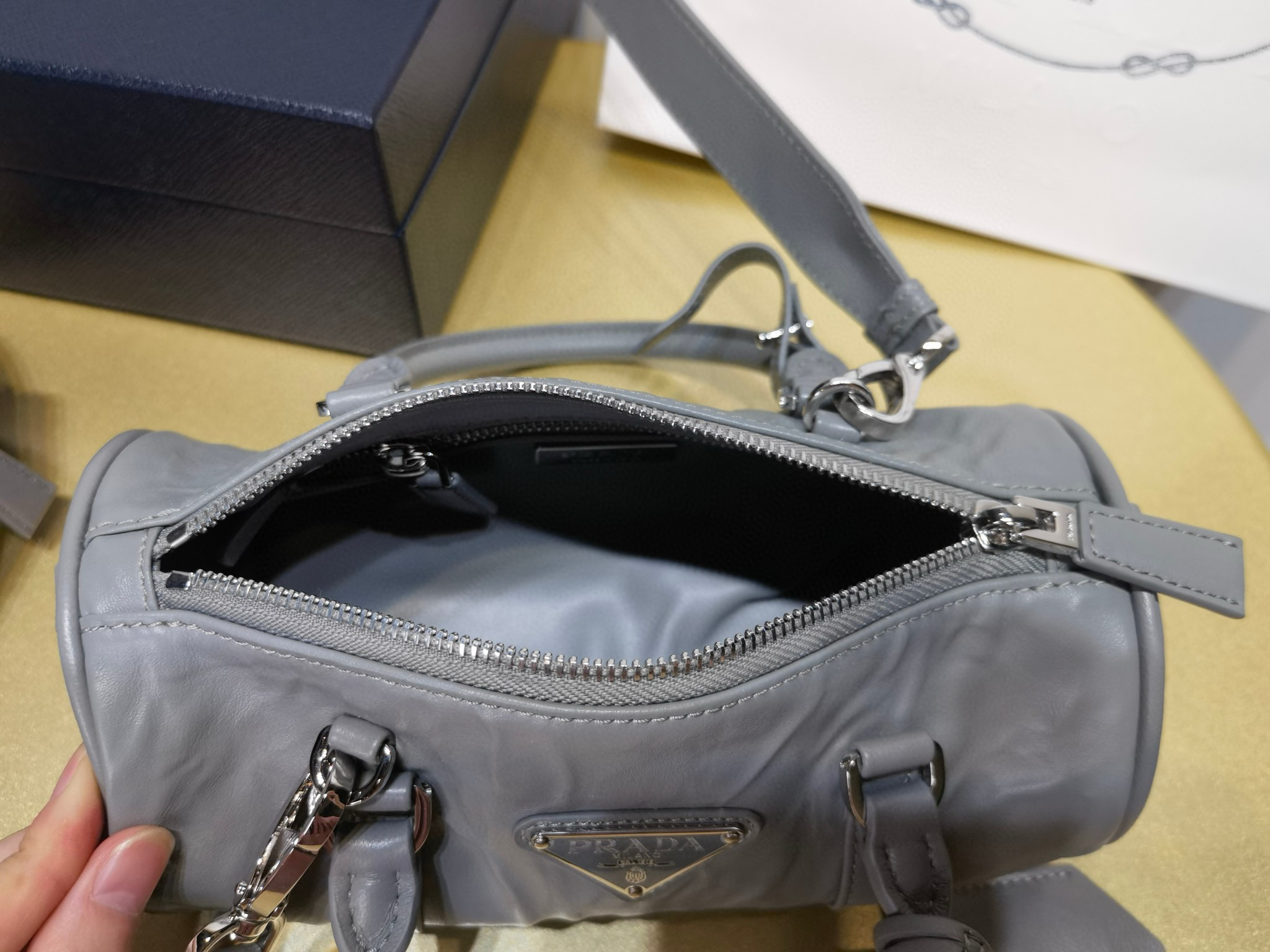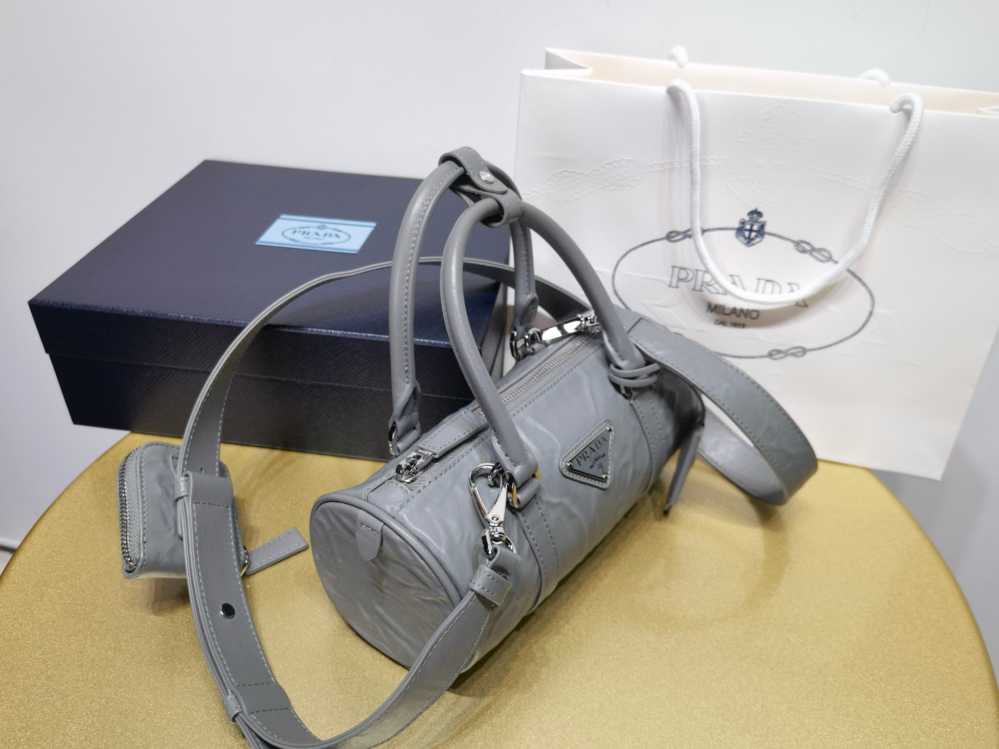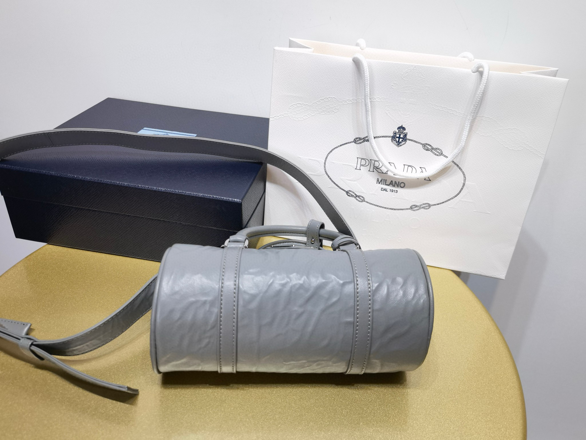 PRADA普拉達包包保值嗎 官網旗艦店新款灰色羊皮革手提包