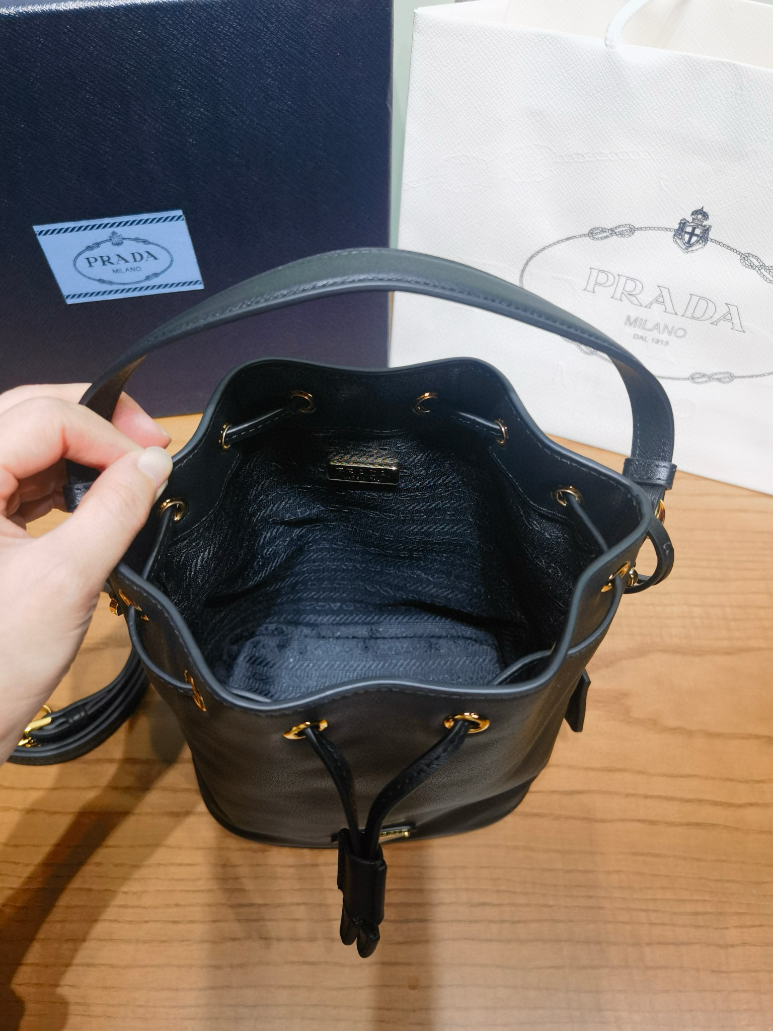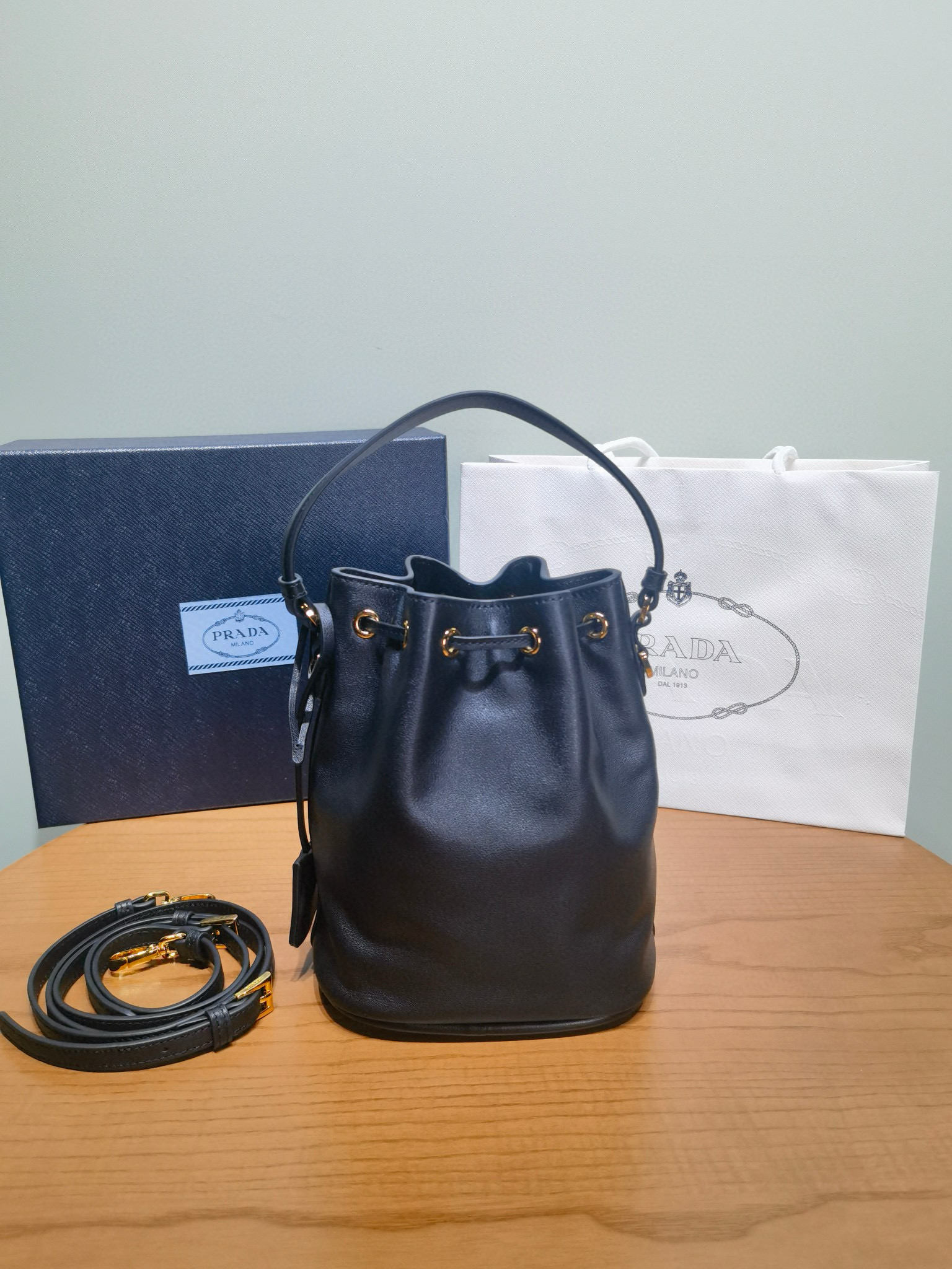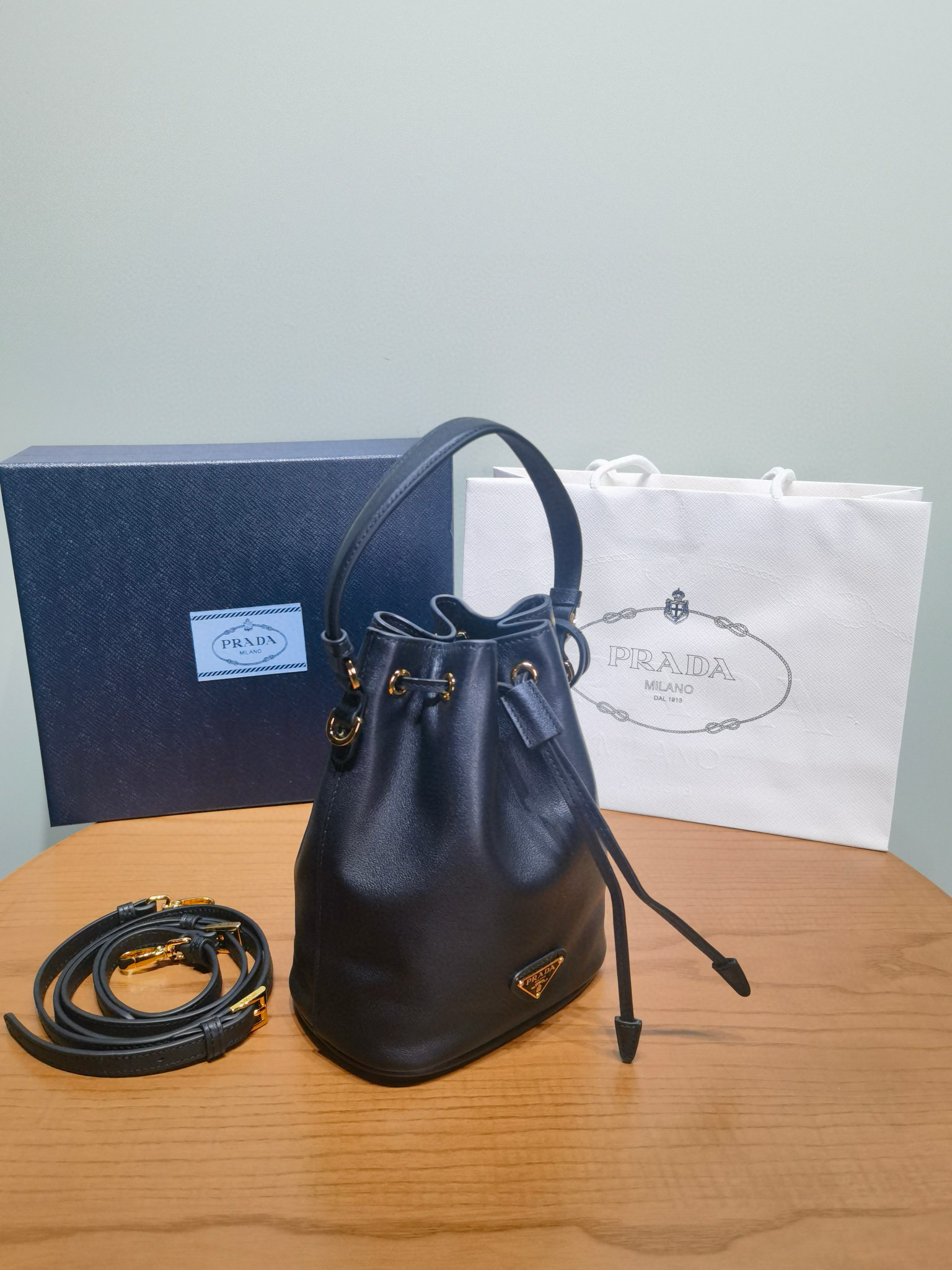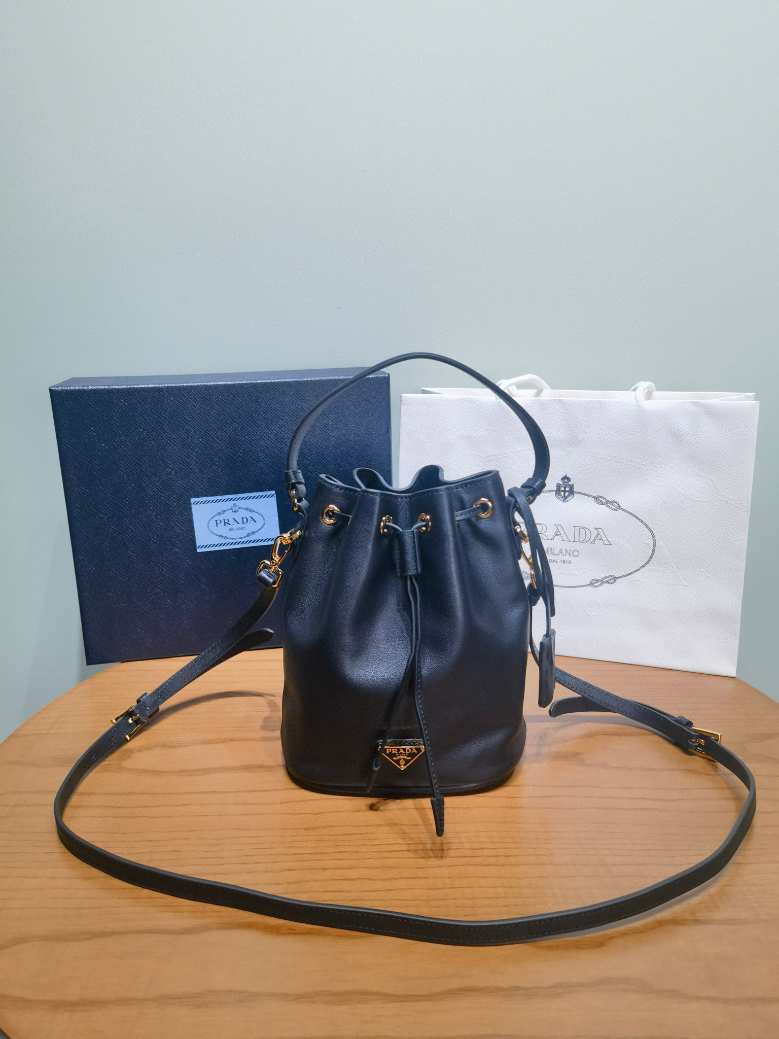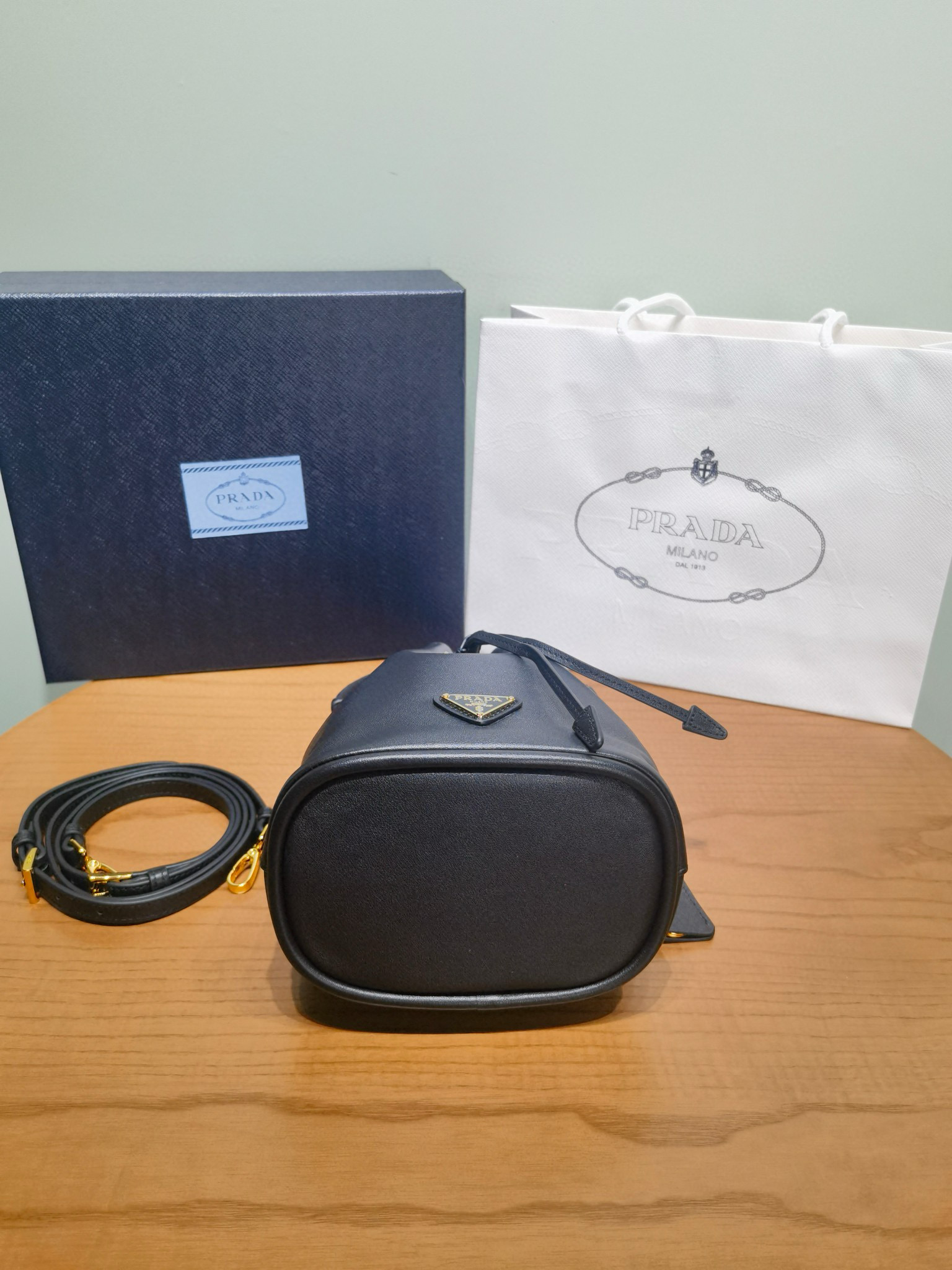 PRADA普拉達包包是那個國家的品牌 官網黑色皮革迷你水桶包