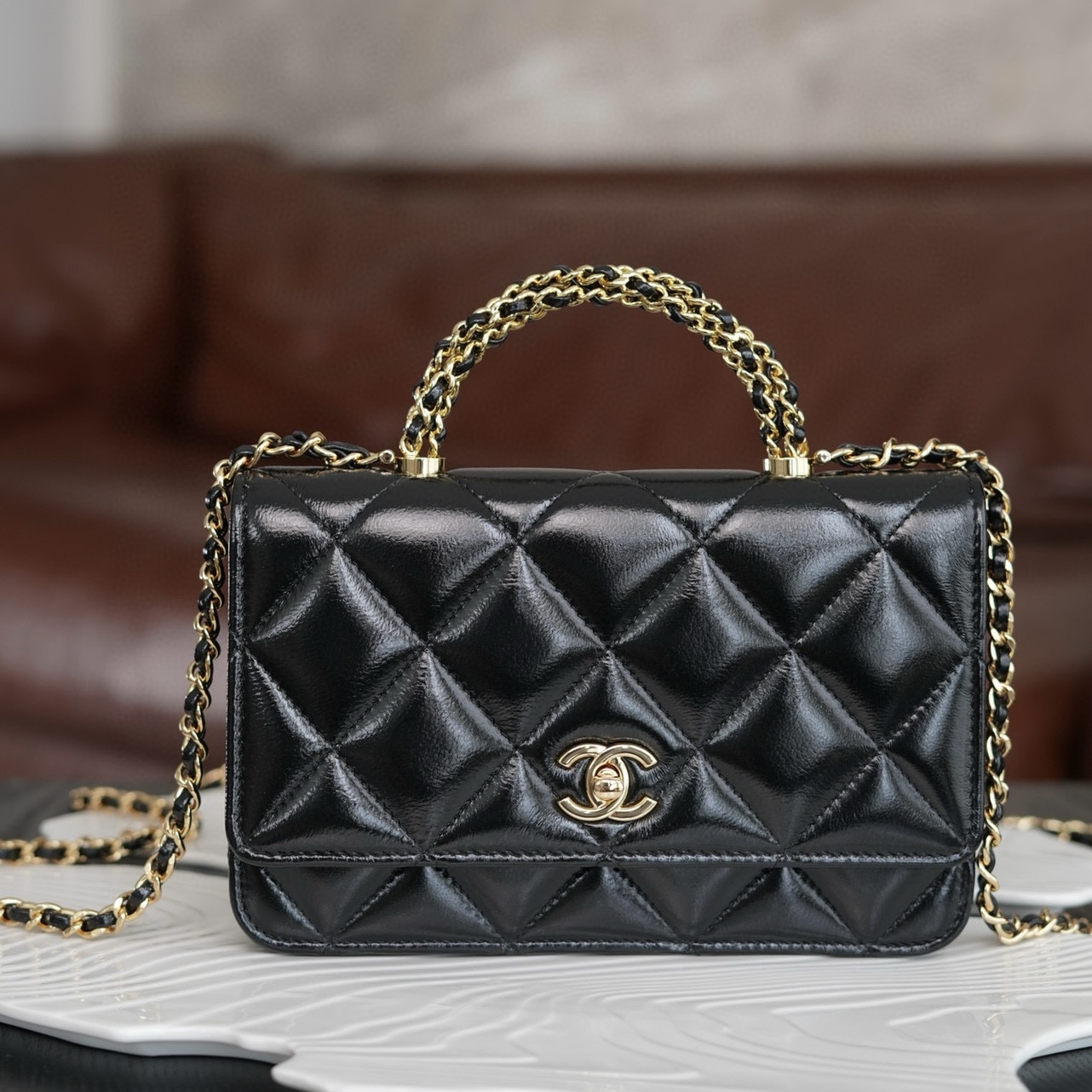 香奈兒包包如何分辨真假 22 小號手袋 亮面小牛皮與金色金屬