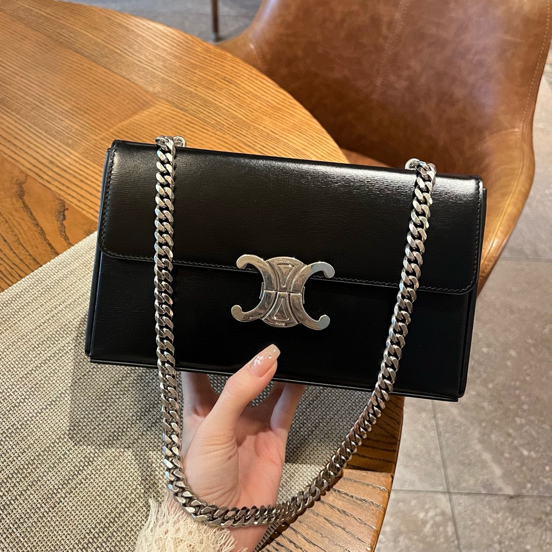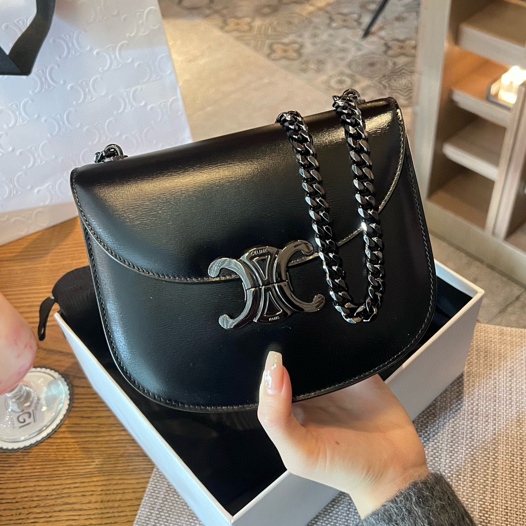 Celine女包 官方旗艦店價格 BESACE CLEA亮澤牛皮革鏈條包 黑色