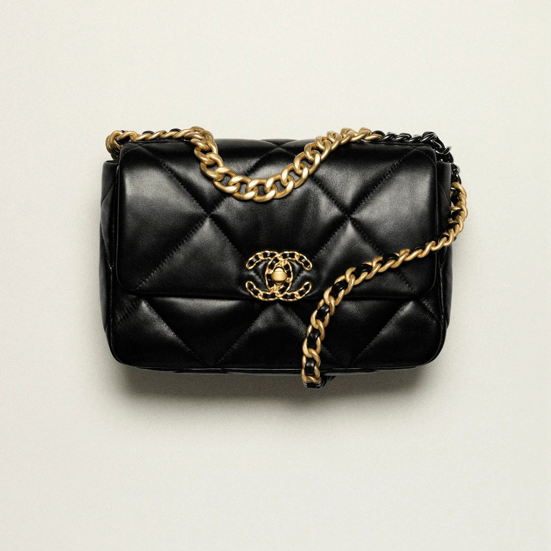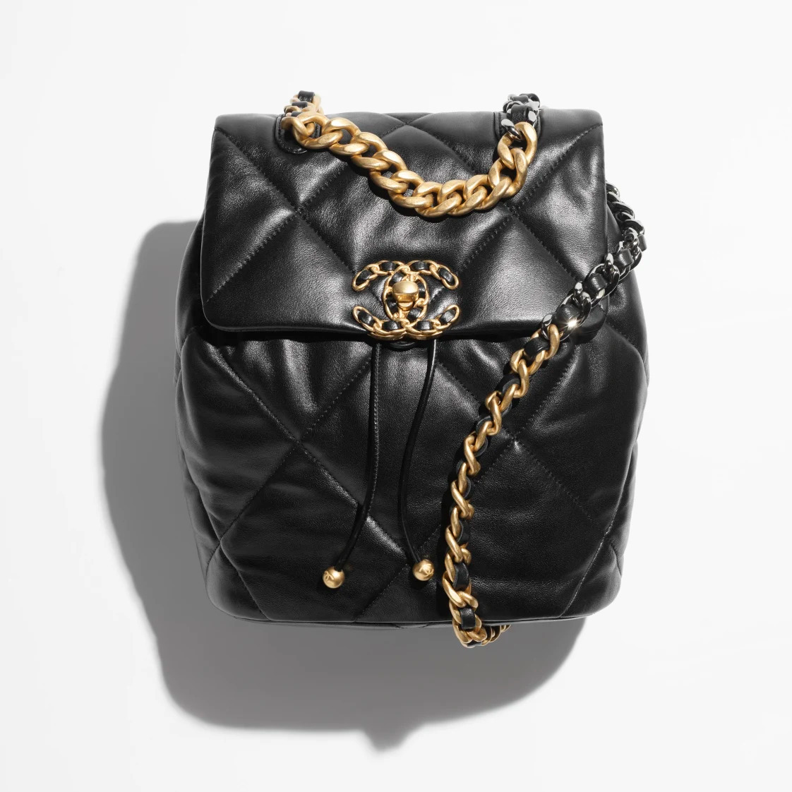 CHANEL女士包價格及圖片官網 黑色19雙肩背包 金色金屬 亮色小羊皮