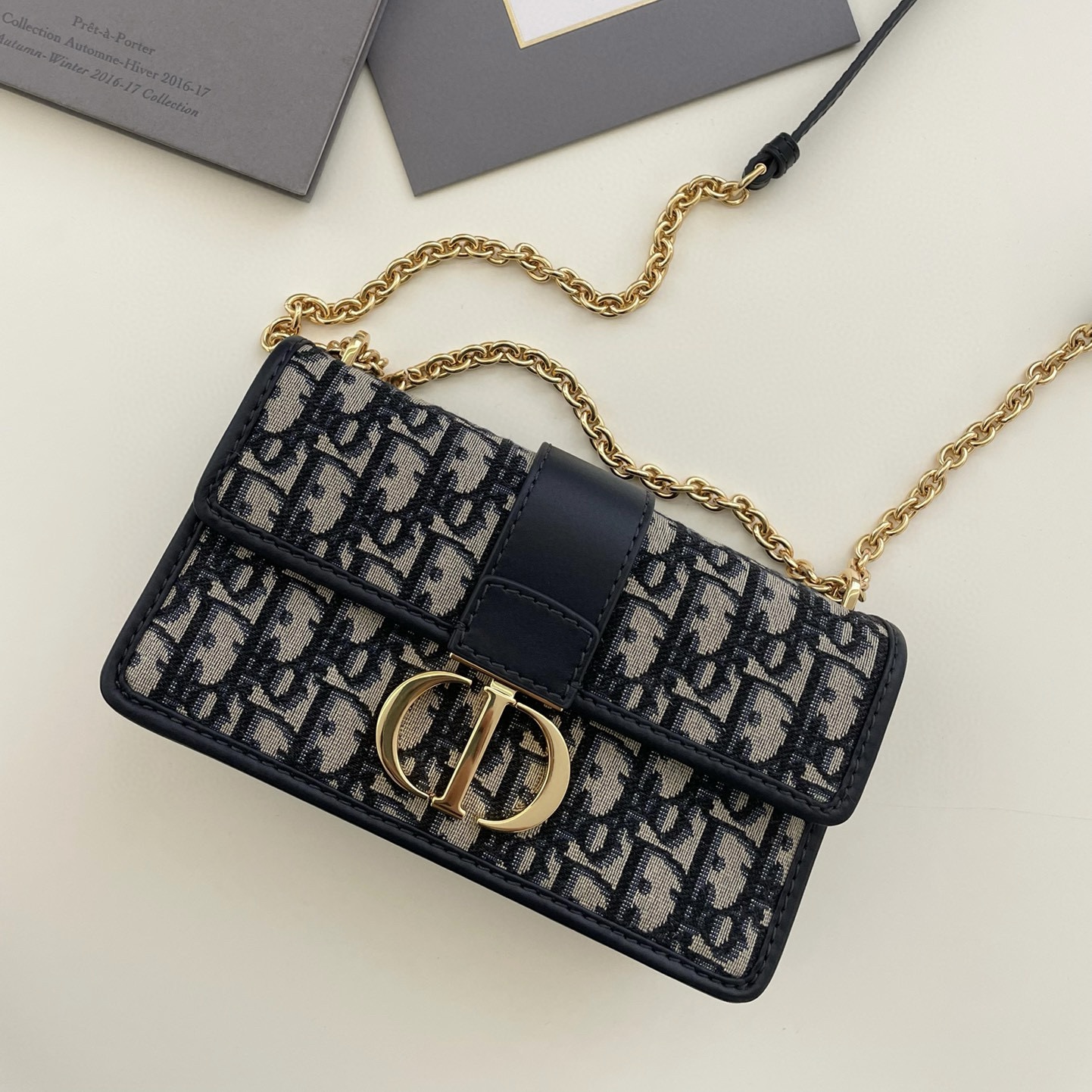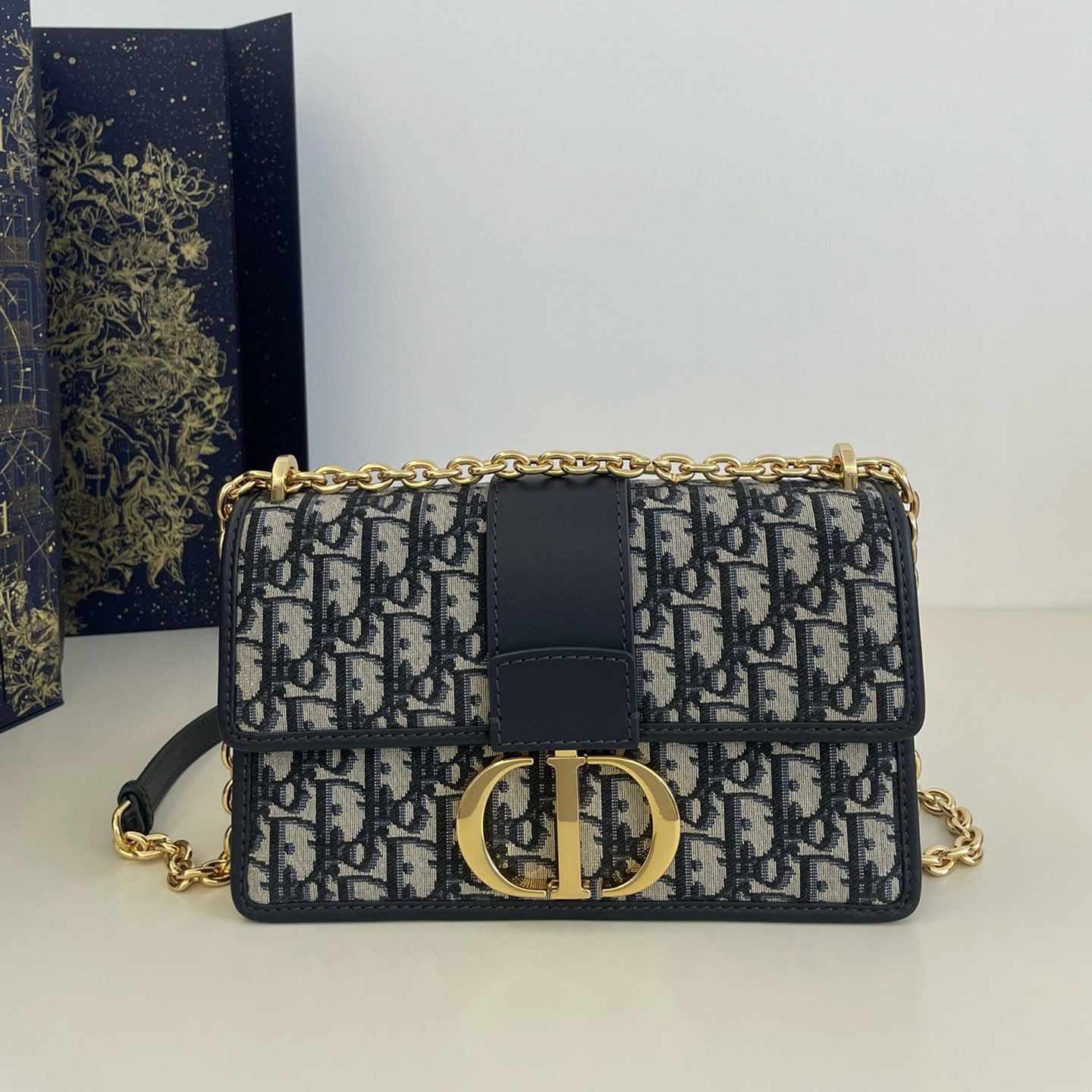 DIOR迪奧女士手袋官網新款30 Montaigne 鏈條包藍色 Oblique 印花面料