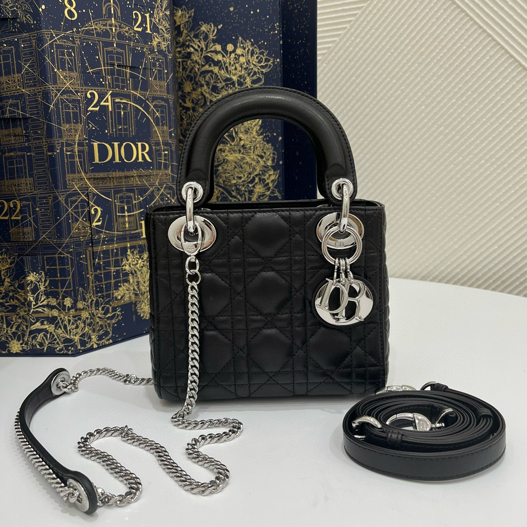 DIOR迪奧包包經典款式 戴妃包 黑色羊皮革迷你Lady Dior 手袋