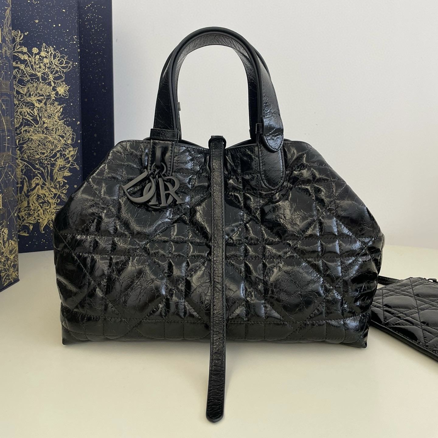迪奧女包 怎麽辨別真假 大號 Dior Toujours 手袋 黑色褶皺牛皮革超大藤格紋