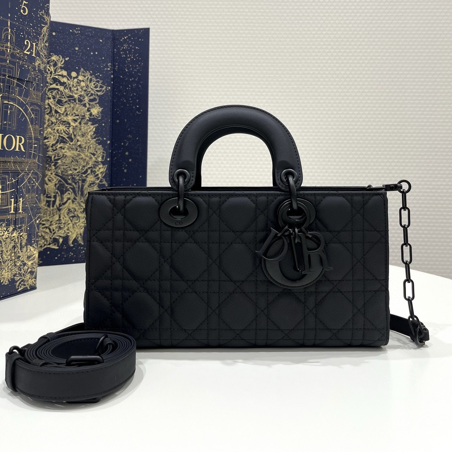 迪奧女包 中國官方旗艦店 小號 Lady D-Joy 手袋 黑色啞光牛皮革藤格紋