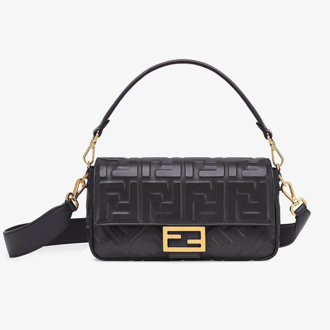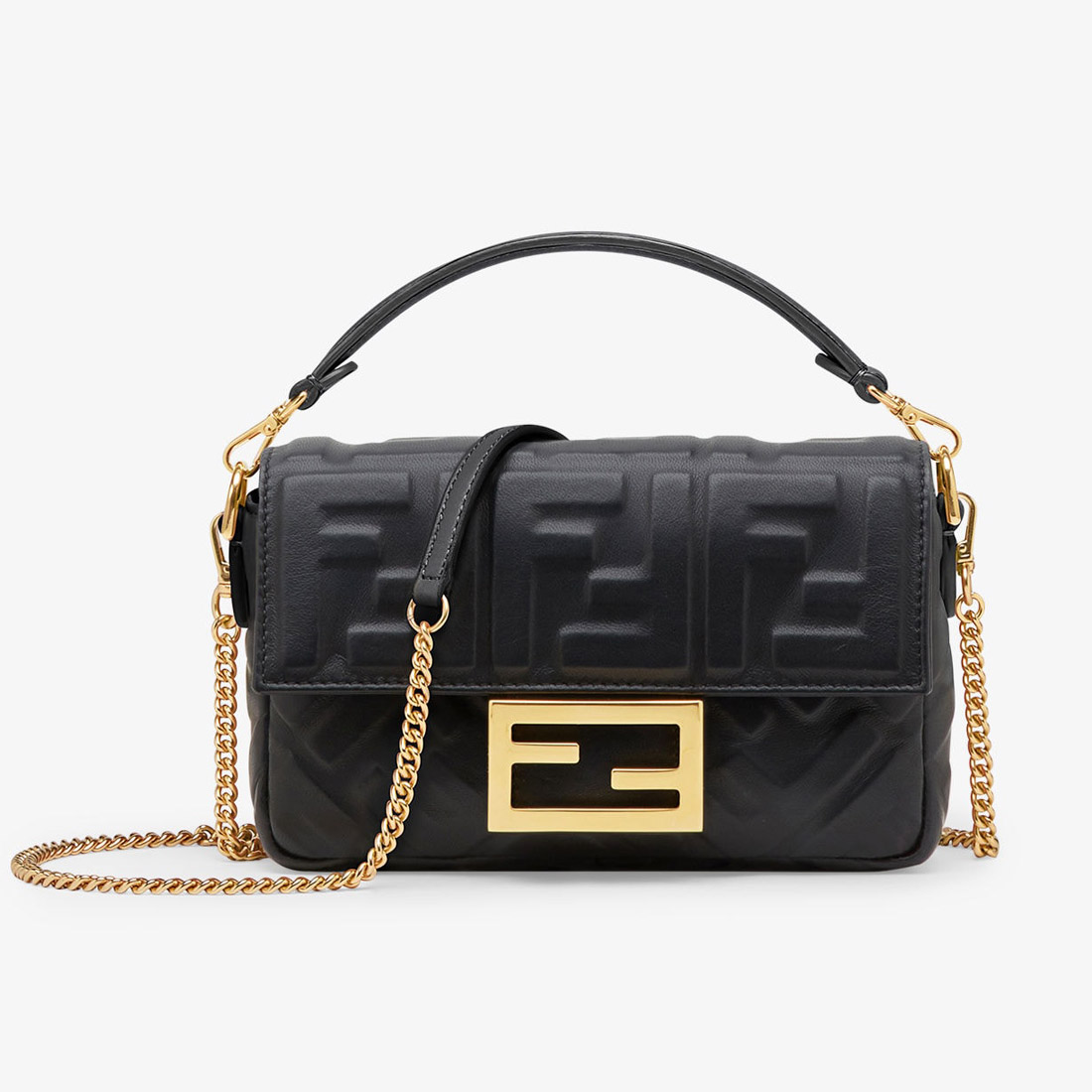 芬迪FENDI中國官方網站 Iconic Baguette中號手袋黑色納帕軟皮革