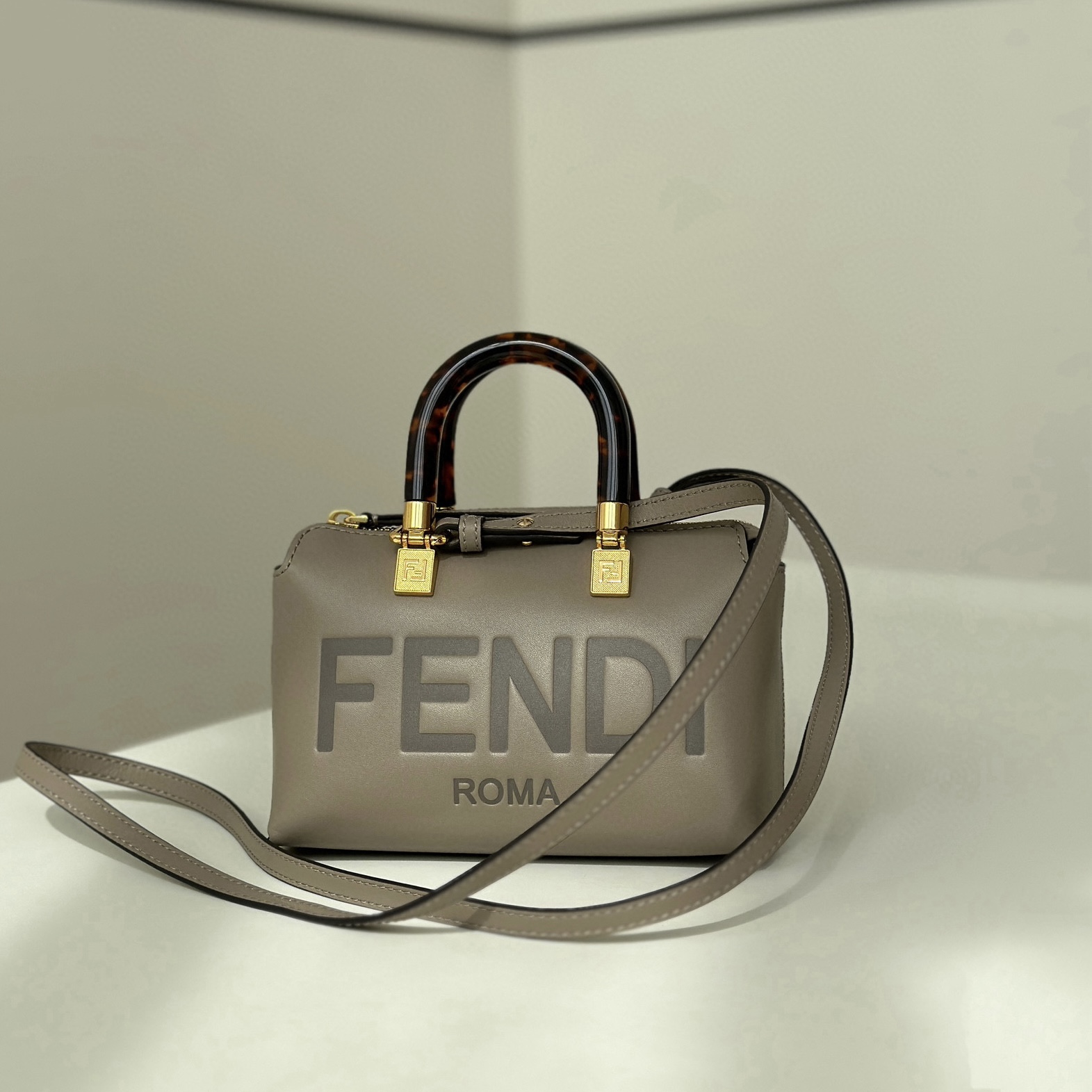 FENDI芬迪包包官方網站By The Way中號灰色牛皮革波士頓包
