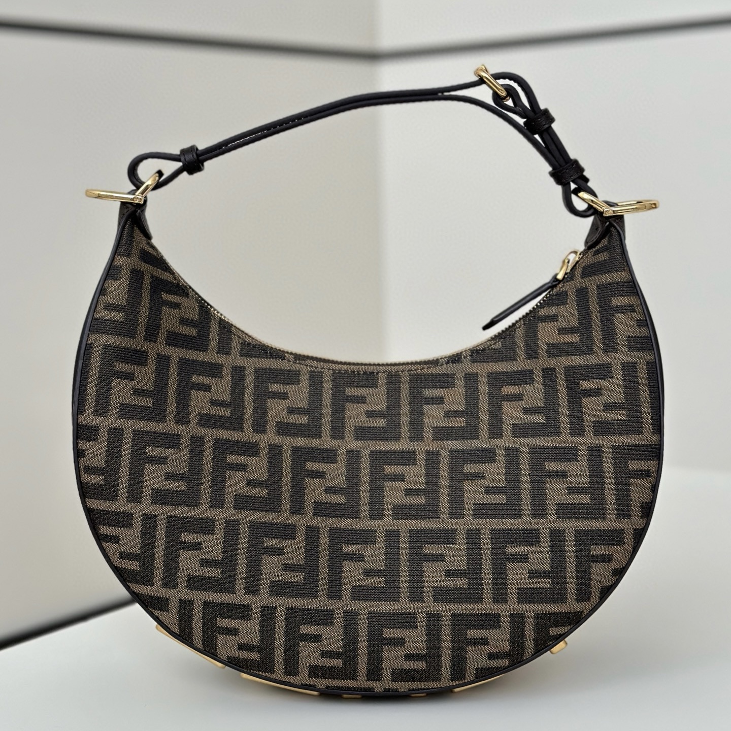 FENDI芬迪經典老花系列官網Fendigraphy小號新月包 棕色FF提花