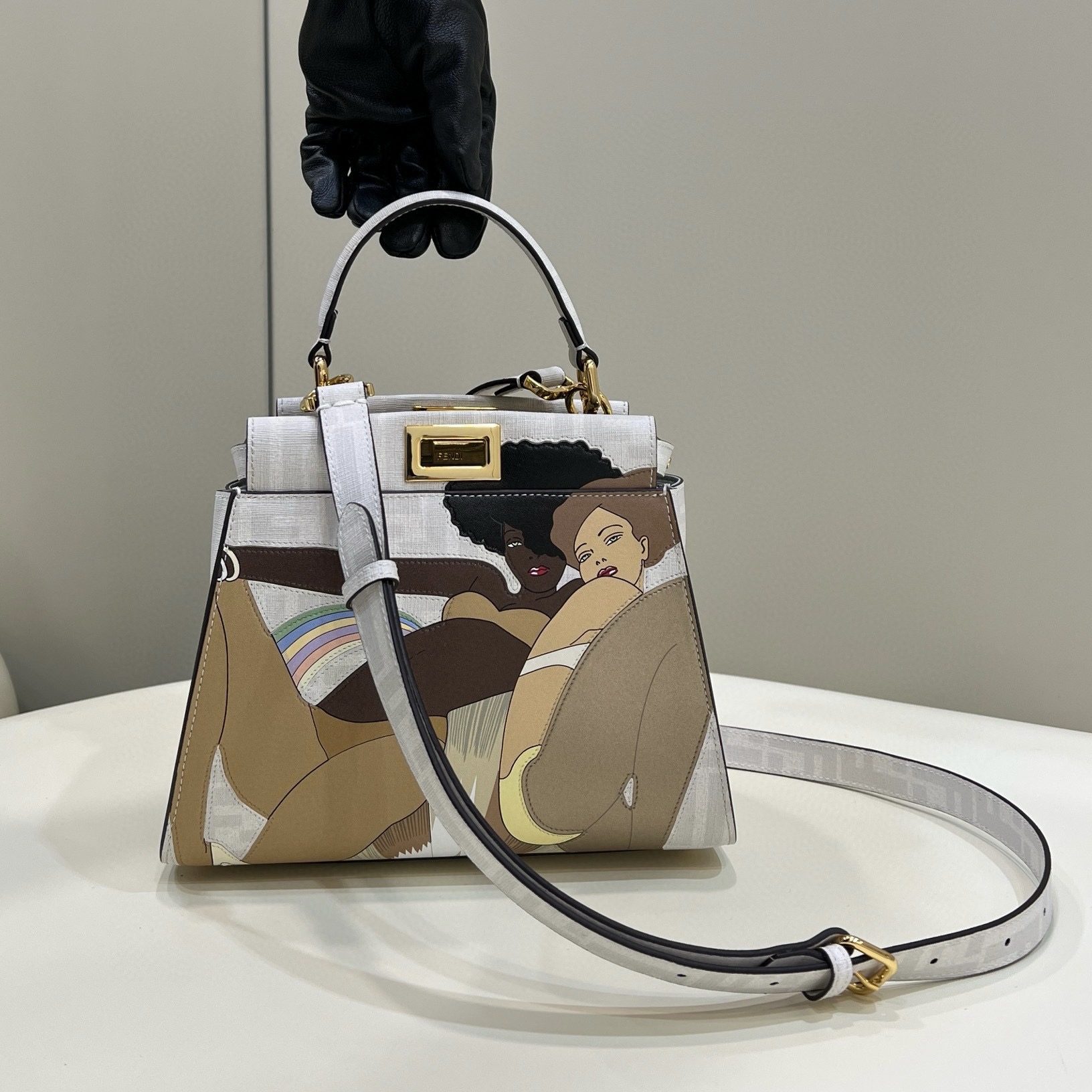 FENDI Peekaboo釉光布料小號手袋 斜挎包 單肩包 官方網站