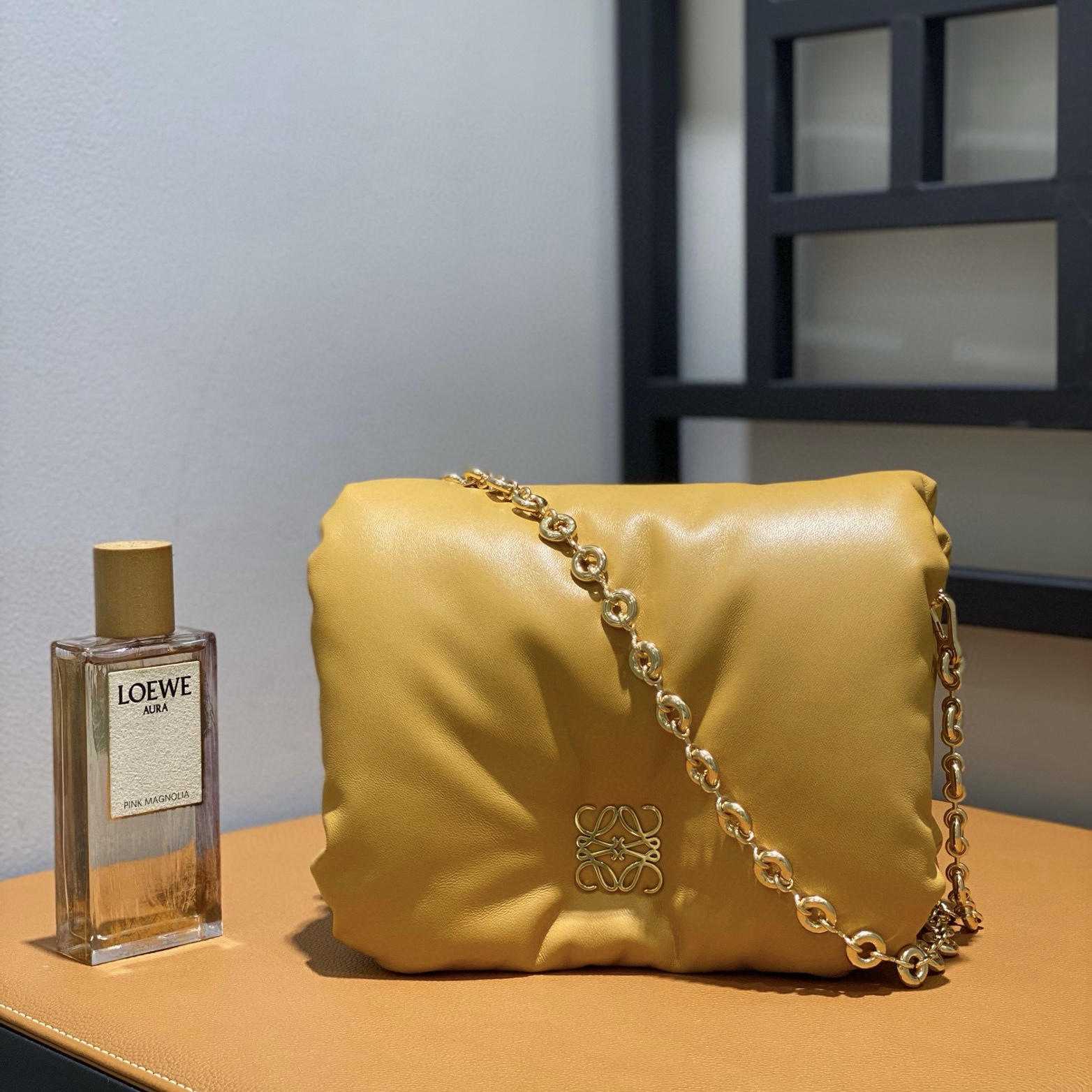 LOEWE女士包包最新款官方旗艦店中號亮面納帕羊皮革 Puffer Goya 單肩包