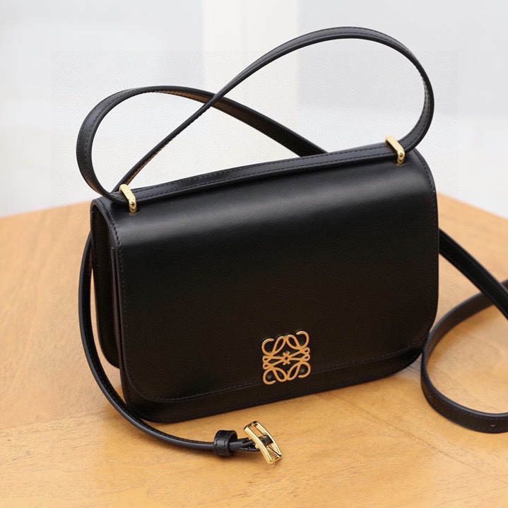 LOEWE女士包包官方官網最新款式 經典黑色小號絲綢牛皮革 Goya肩背包
