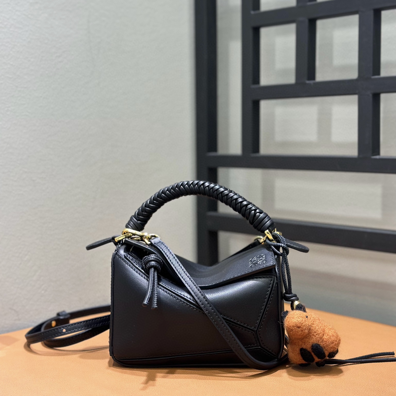 LOEWE包包官網2025新款編織手柄迷你經典牛皮革 Puzzle 手袋 黑色