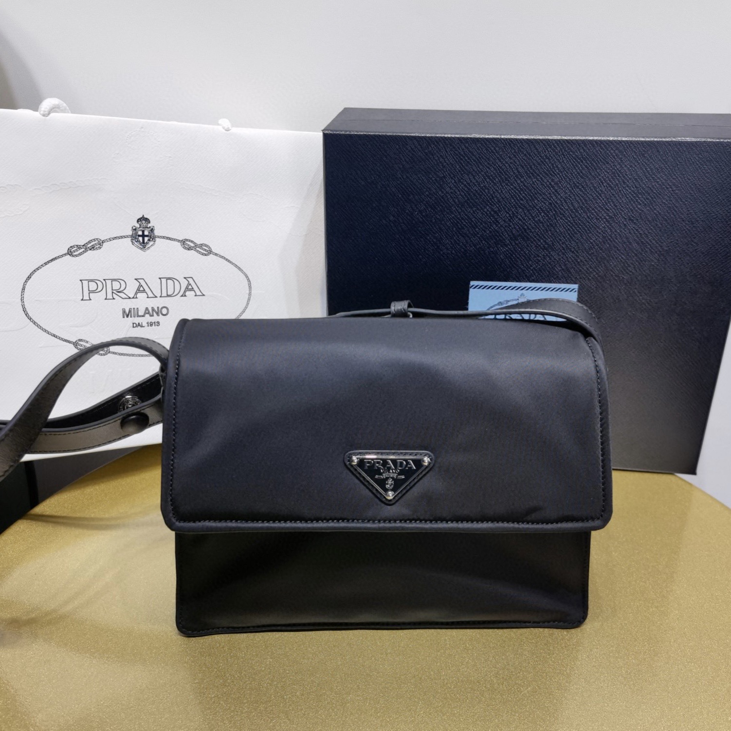 Prada包包 官網專賣店如何分辨真假 黑色新款斜挎包郵差包