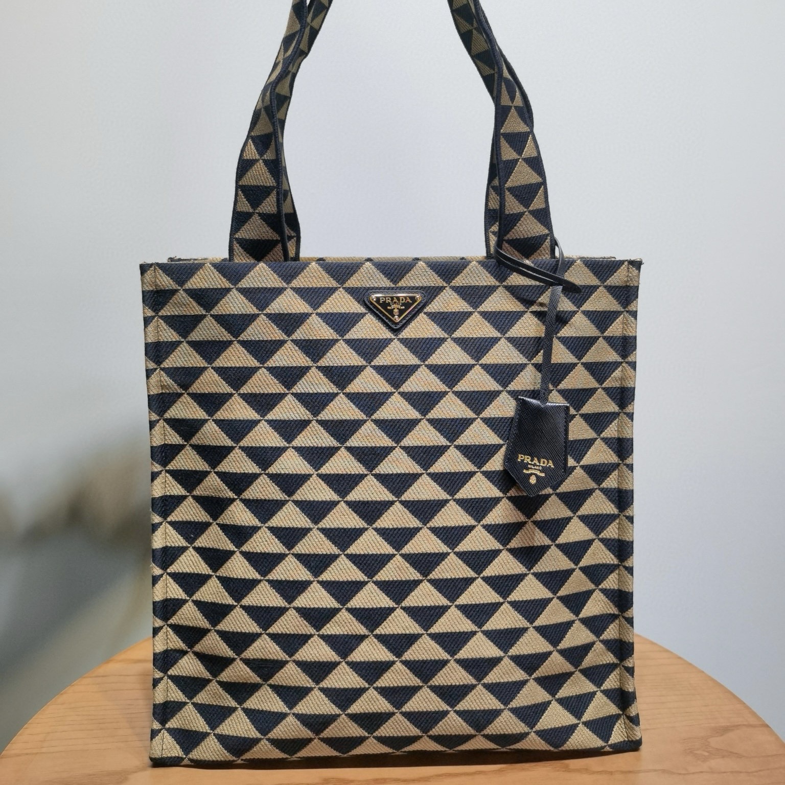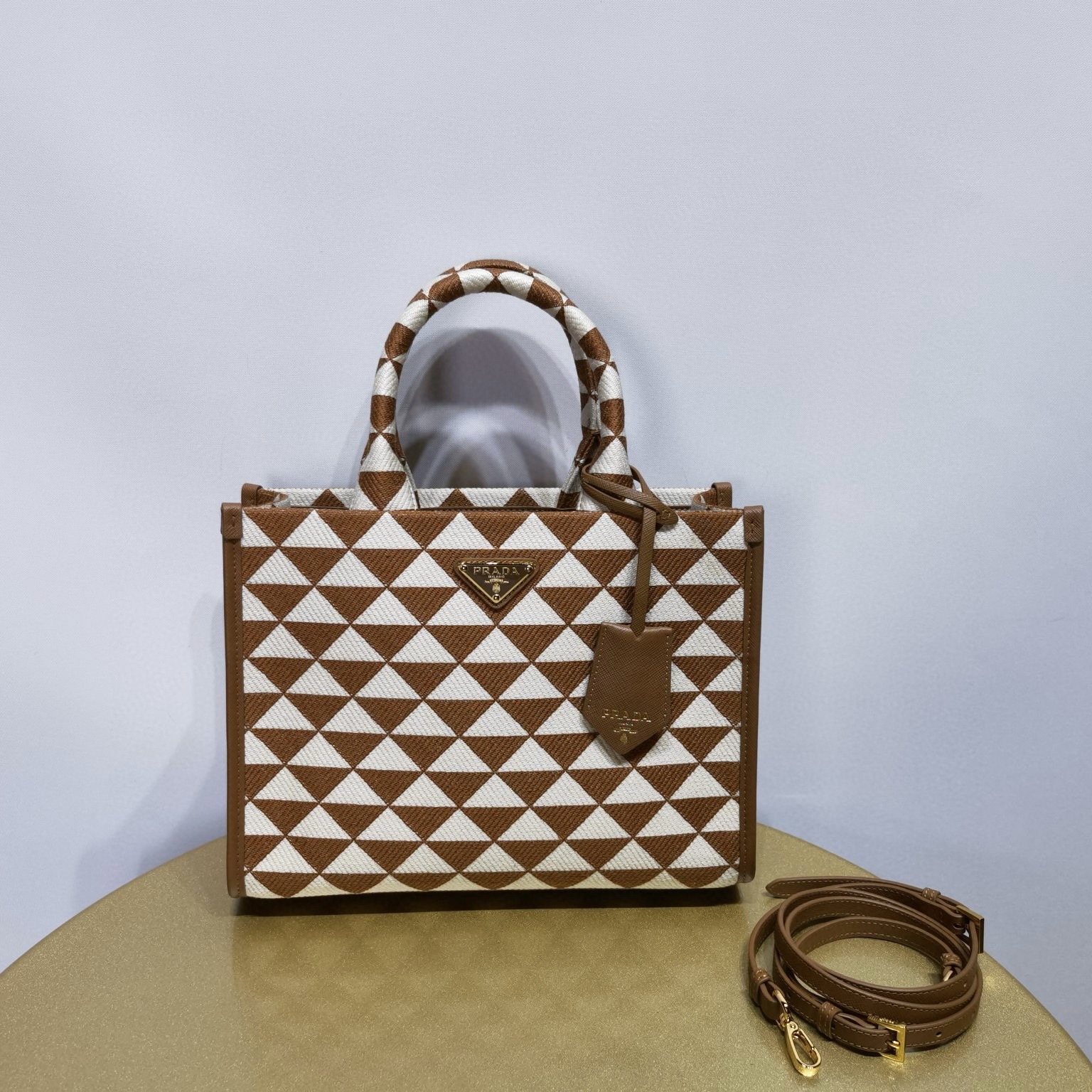 Prada普拉達女包 經典款式包包官網專賣店 刺繡提花托特包