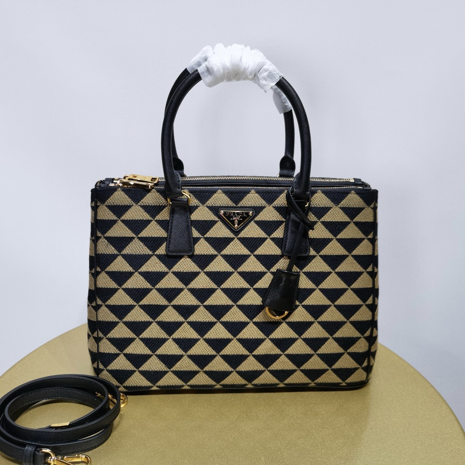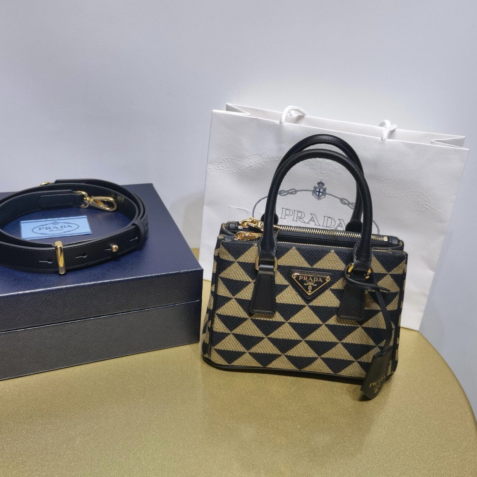 Prada普拉達女包官網 中號經典款式手袋 刺繡織物Galleria包包