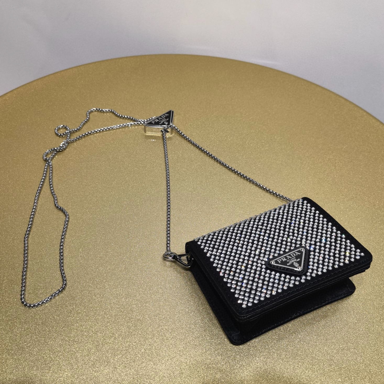 Prada普拉達女包官網代購多少錢 項鏈水晶斜挎款式包包