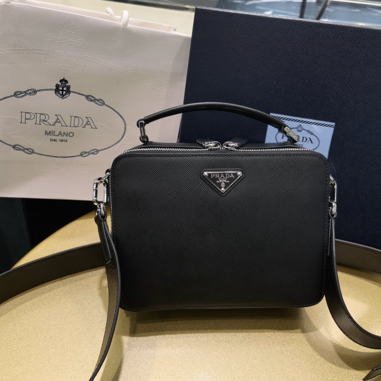 Canada Prada包包專賣店代購 黑色 Brique Saffiano 皮革手袋
