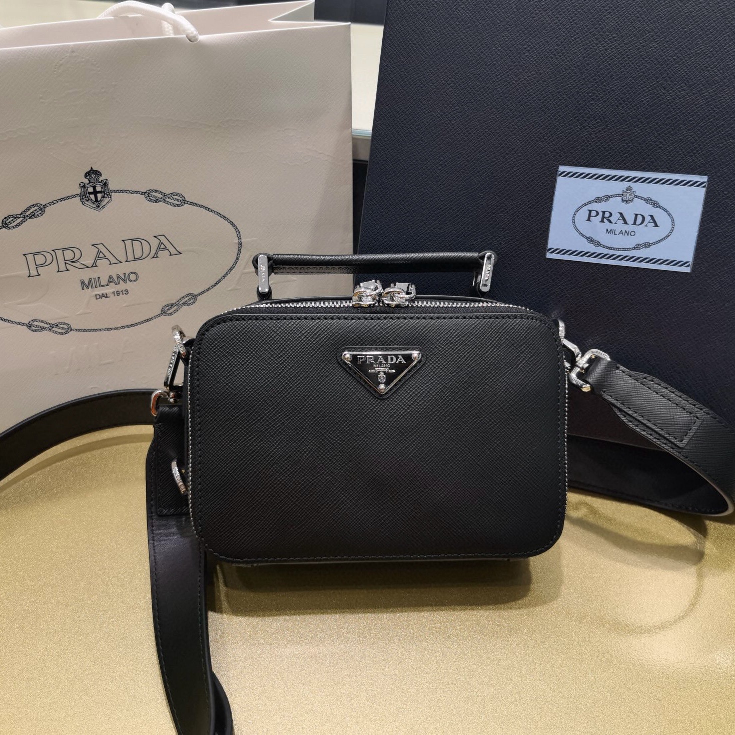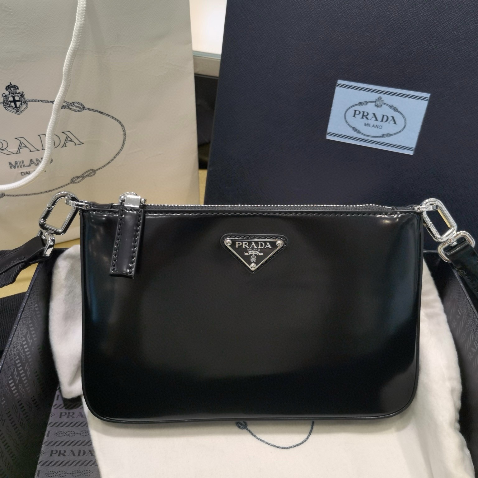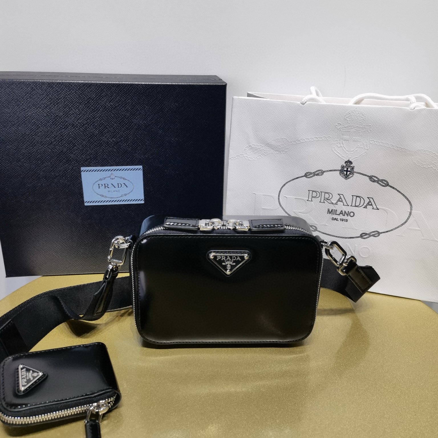Prada包包屬於什麽檔次 2024新款亮面皮單肩包斜挎包
