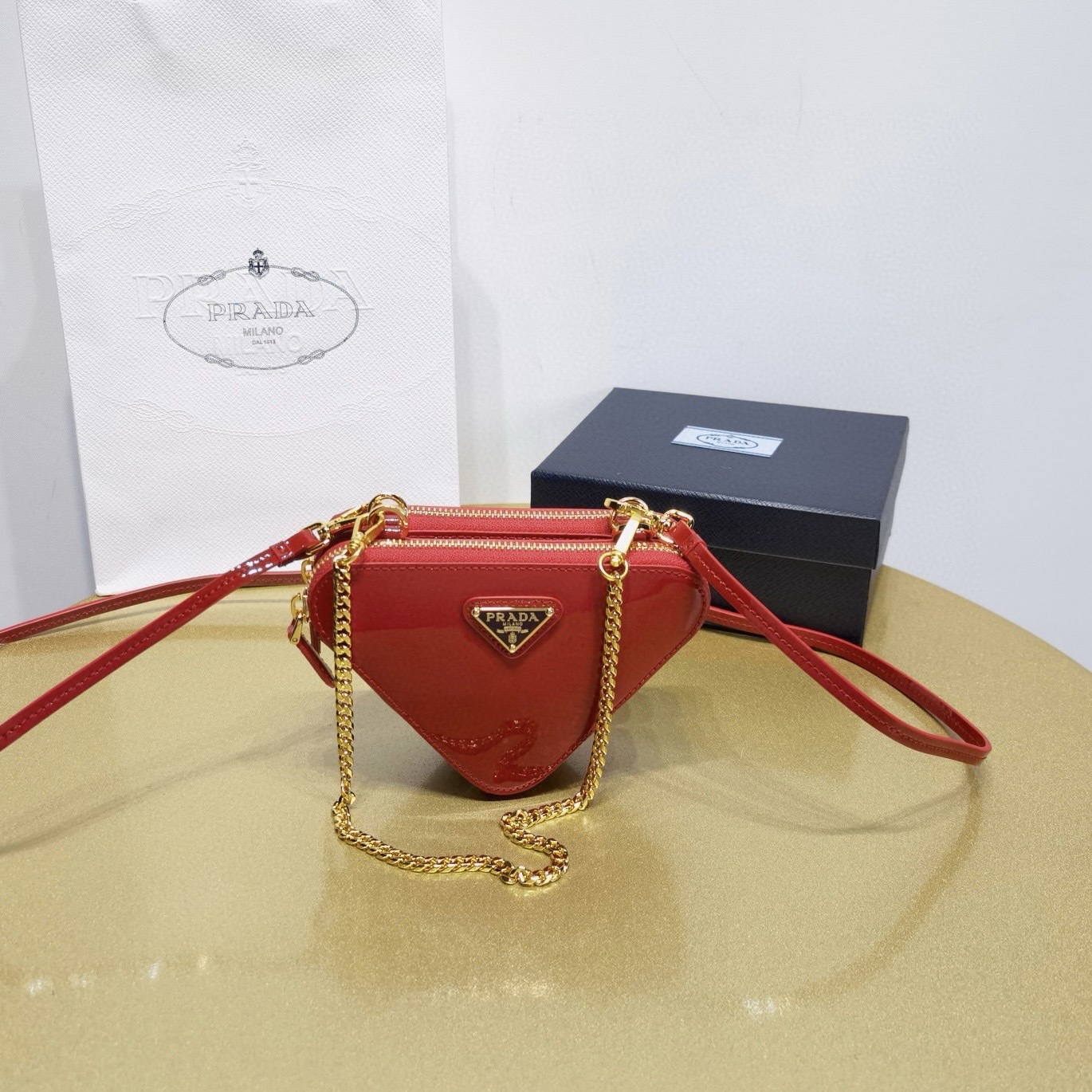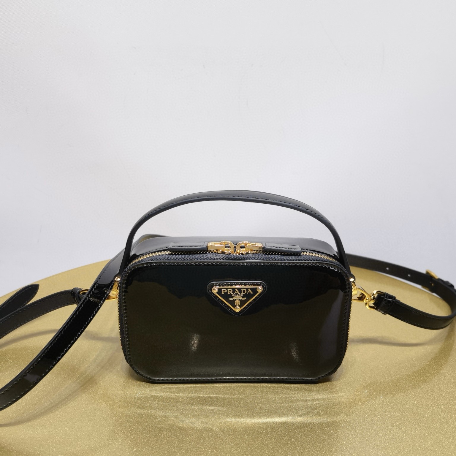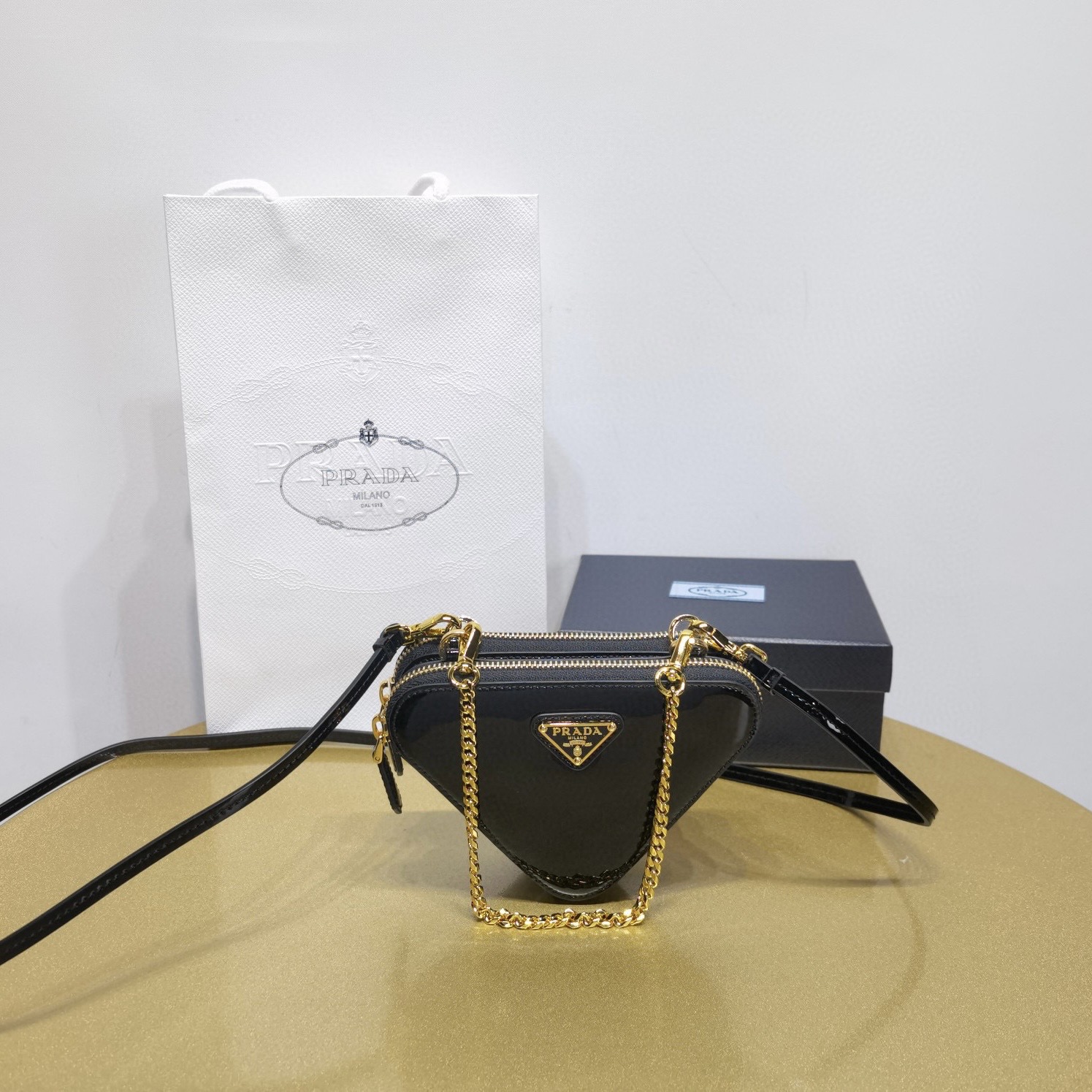 Prada普拉達女士包品牌正品官方網站 2024上新款漆皮斜挎三角包雙子包