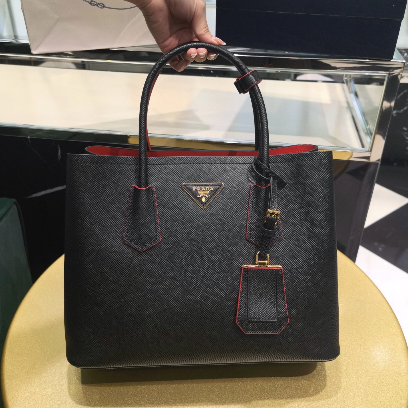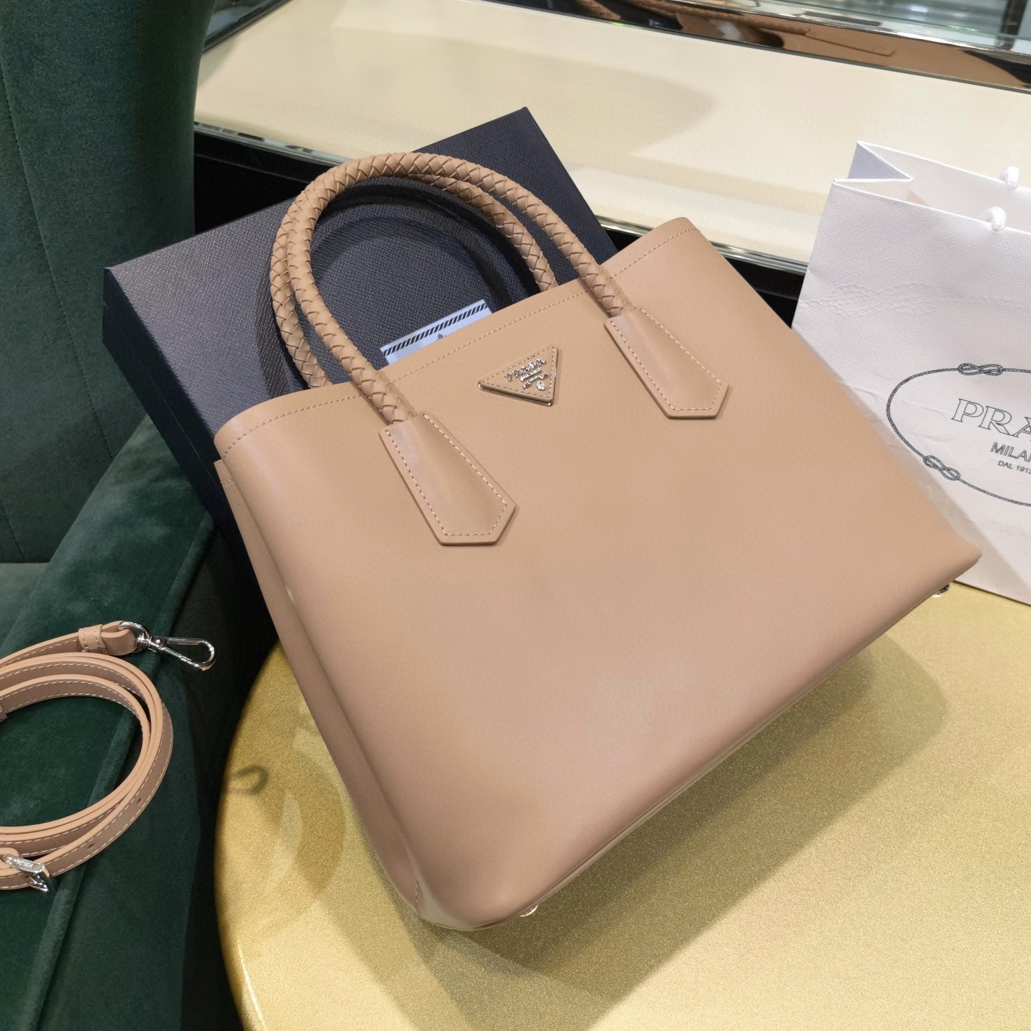 Australia Prada女士包新款Double手袋Saffiano皮革編織提手