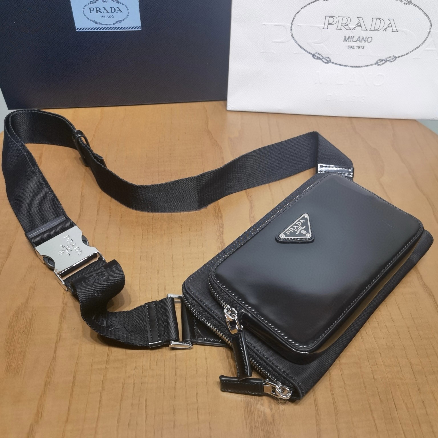 Prada品牌奢侈品標誌性包包專賣店 新款亮面皮斜挎包腰包胸包