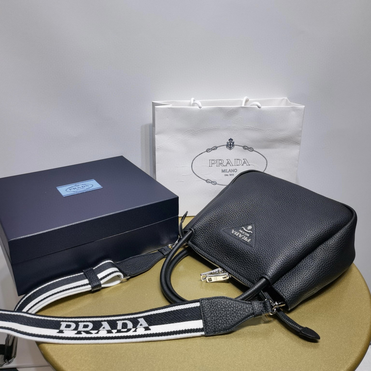 中國Prada普拉達包包經典款式專賣店 黑色小號雙肩帶手提包